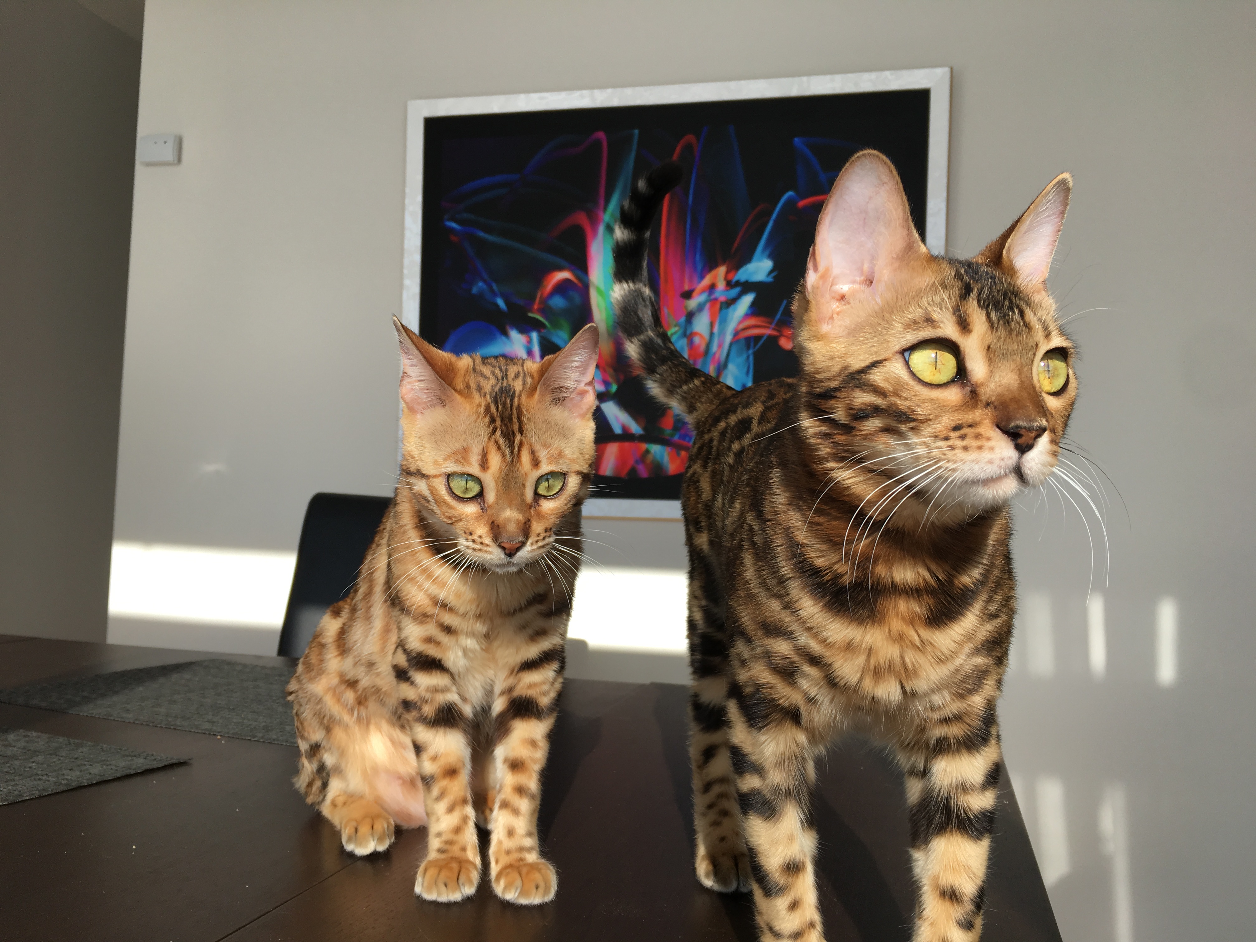 Ляпота….хотела сказать что бенгалы,а вдруг опозорюсь....У нас у соседа бенгал,только дымчатый...Как они по характеру?