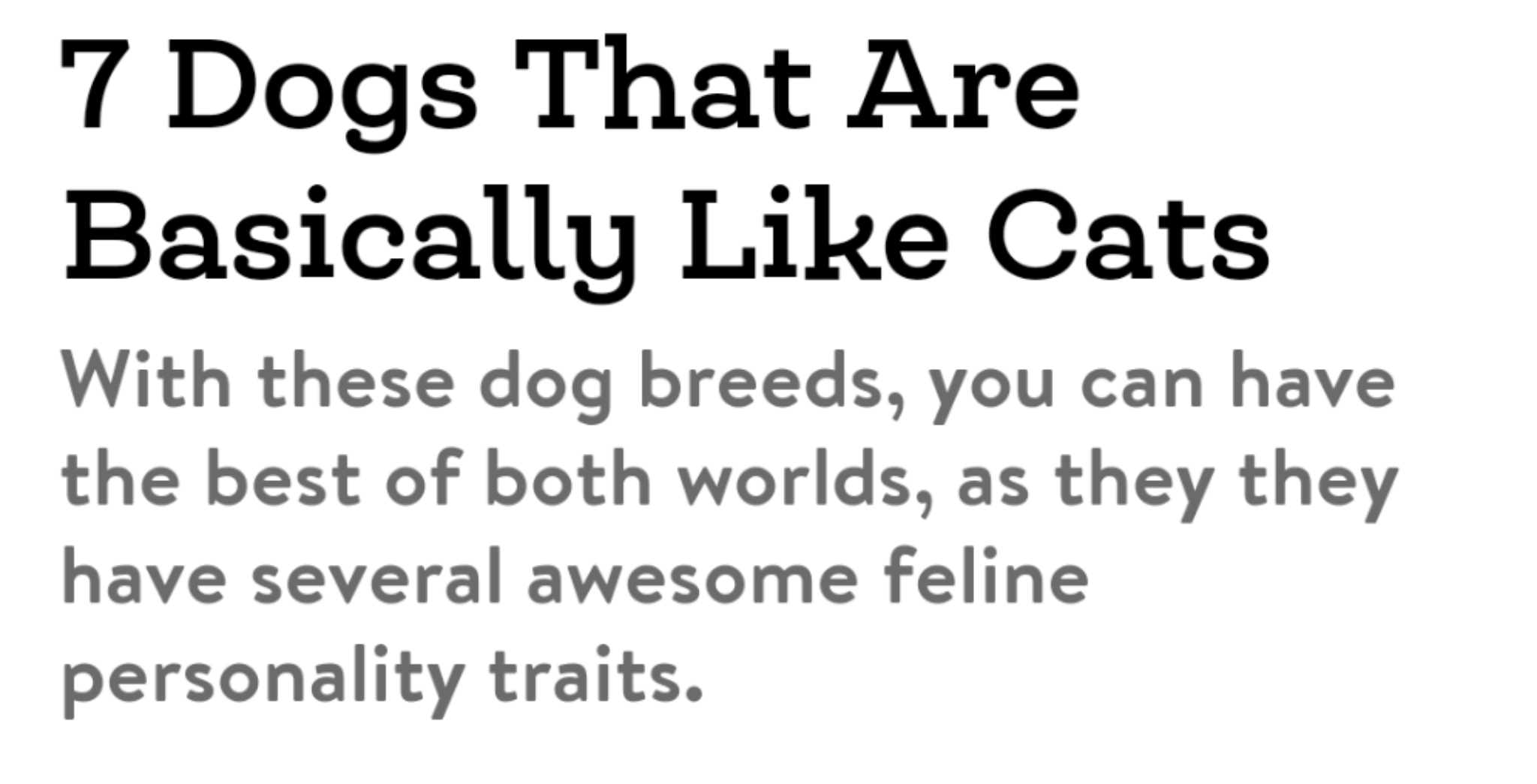 Pixie Dust писал(а): Галя-ля писал(а): Есть куча владельцев кошек, восклицающих « мой кот как собака» Но нет владельцев собак, мечтающих, что бы их собака стала кошкой, ну хоть на минуту. . Вот насчет темы - согласна. Как вообще можно сравнивать!!! Для тех кто не определился собаку хочет или кошку - есть породы собак которые ведут себя как кошки. https://www.womansday.com/life/pet-care ... like-cats/