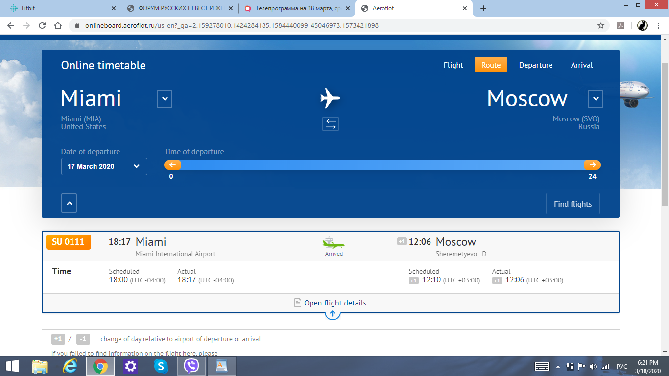бухгалтер писал(а): Nata_5 писал(а): Аэрофлот оставил только рейсы в NY, все остальные отменены. Не надо ересь нести - как летали в Майами 4 раза в неделю, так и летают. пока летают, с 29 марта не будут