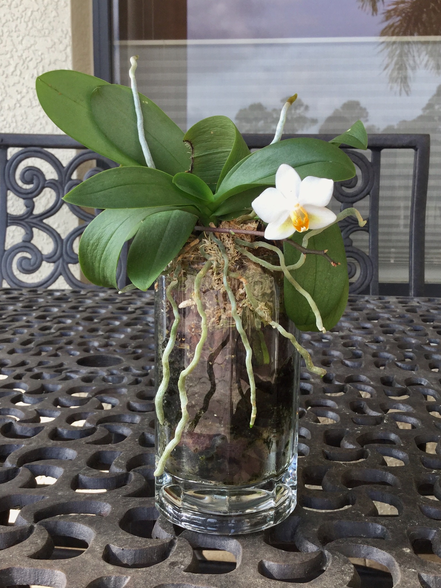 Ну и бебички орхи, растут в пивных кружках, простые на улице, им чёт нравится корнями наружу, а варигатные живут в ванной.