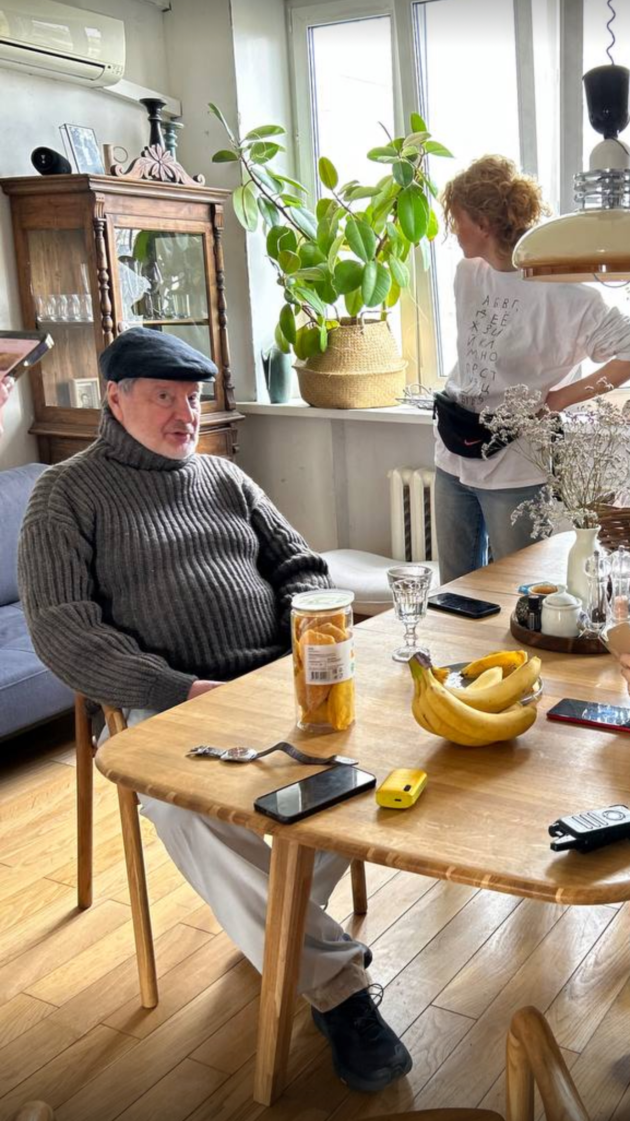 У него плечи поползли. Неужели не видишь. Носил наверное когда моложе был а сейчас плечи сузились, Старик усох. Пусть розовые или голубые рубашки носит. Портной ваш тоже такой же нафталин