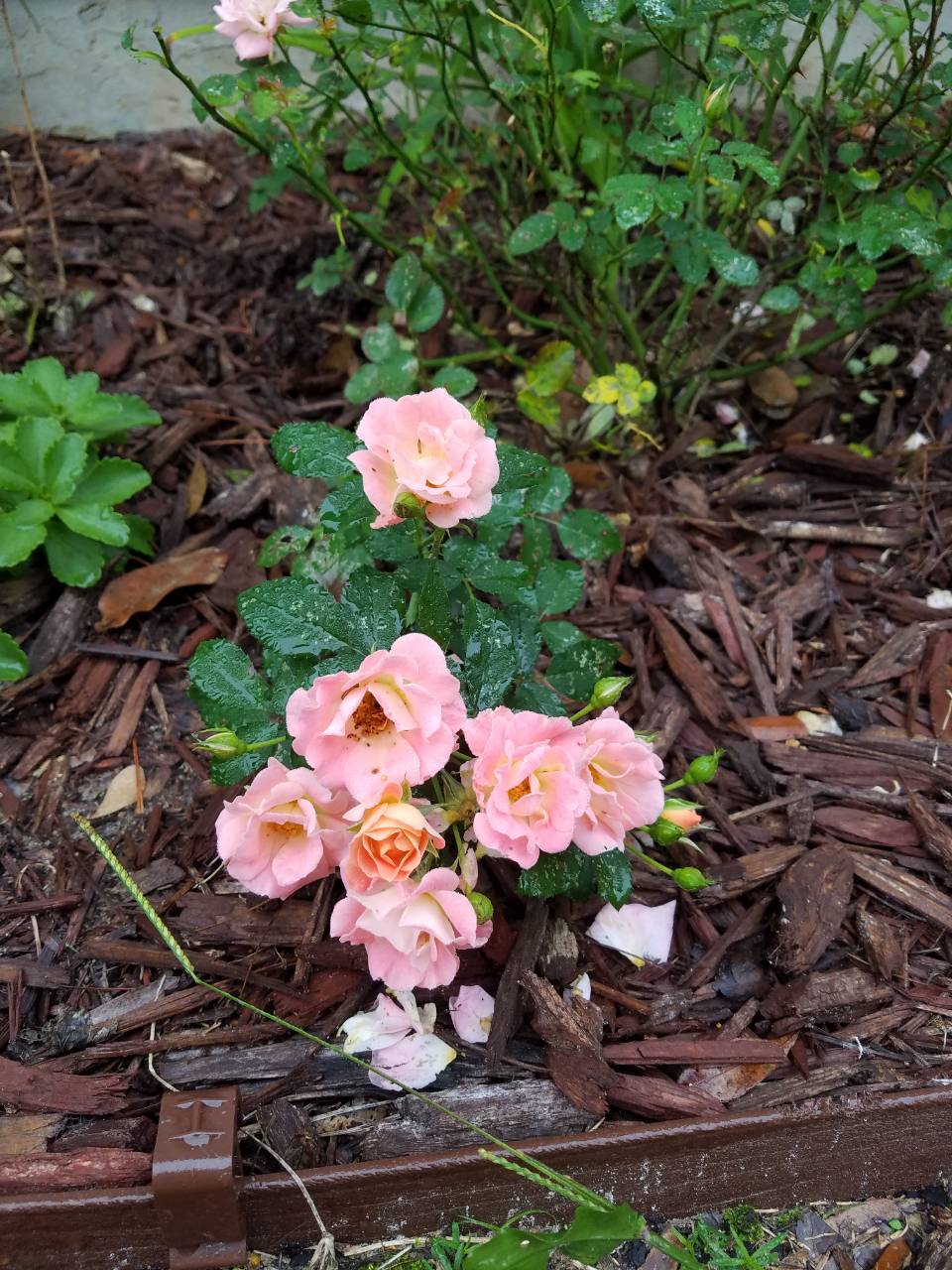 Ну, и немного роз... Дабл Дилайт меня порадовала большим цветочком. Я еще по осени отсадила и обкорнала... думала, что уже до зимы не зацветет... ан нет И одна из последних гроздочек персикового дрифта.