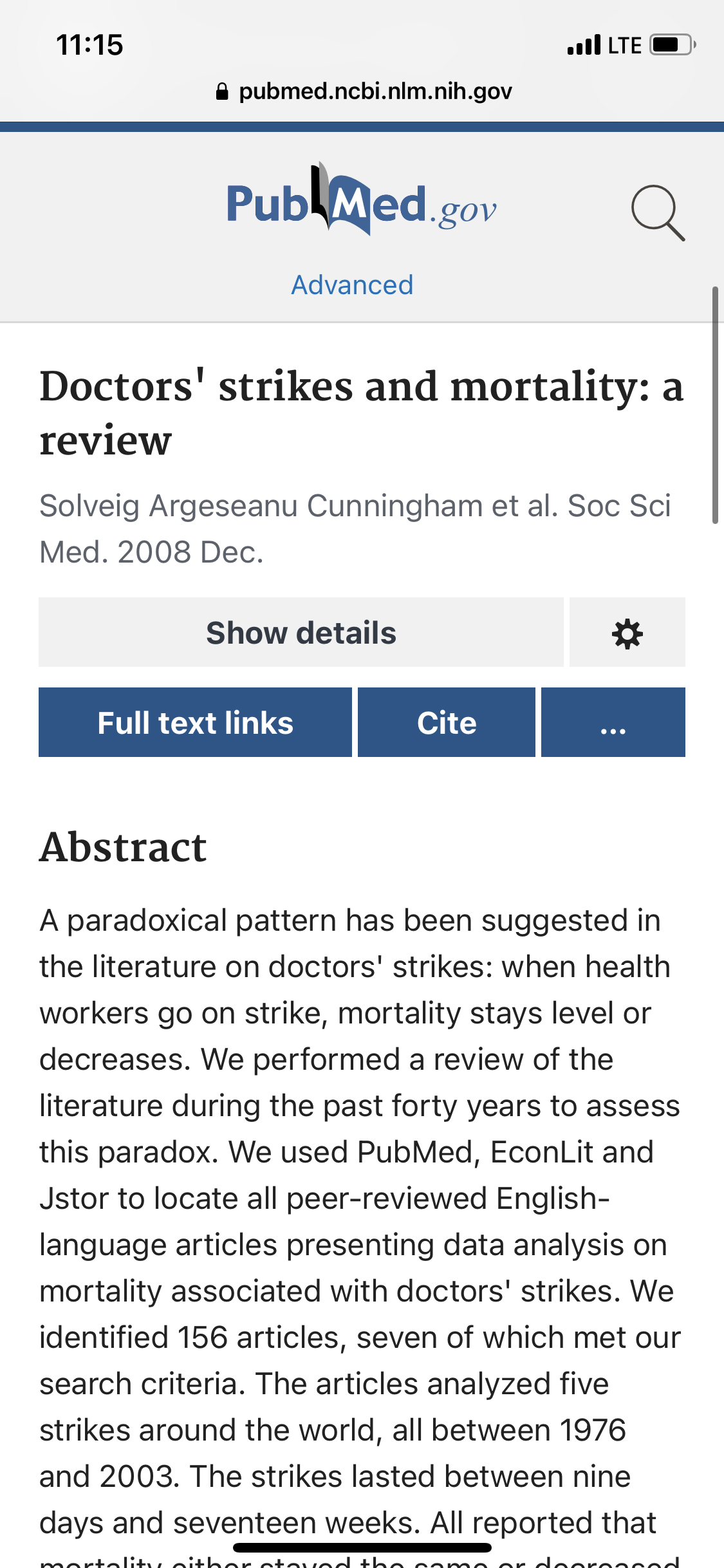 Amalia_Ca писал(а): Насколько смертоносна медицина, становится очевидным, когда происходят забастовки врачей. Когда в 1976 году в столице Колумпбии, Боготе, все врачи, за исключением врачей скорой помощи, исчезли со своих рабочих мест на 52 дня, уровень смертности упал на 35 процентов. Представитель Национальной ассоциации похоронных бюро заявил: «Это может быть совпадением, но это факт».