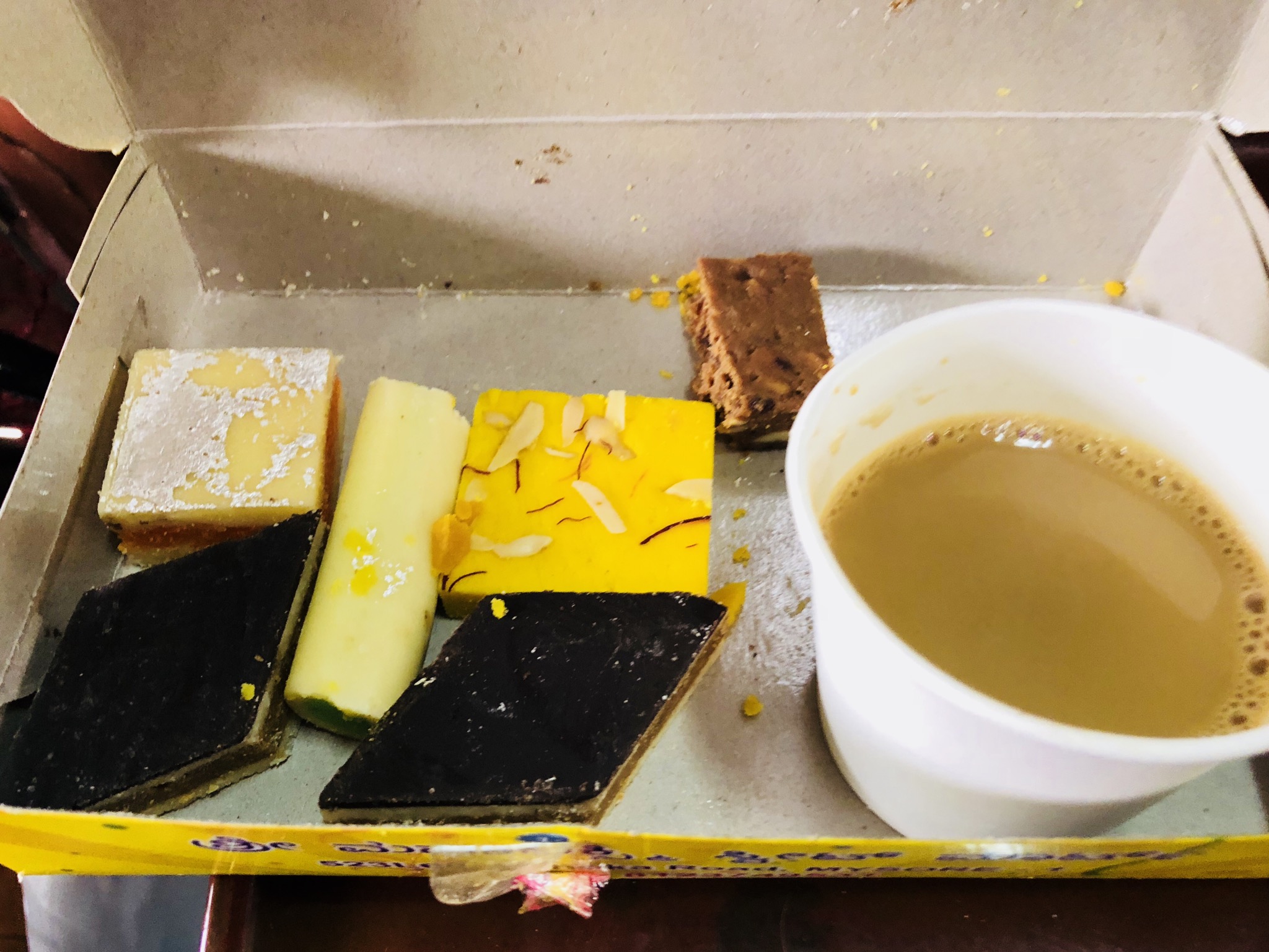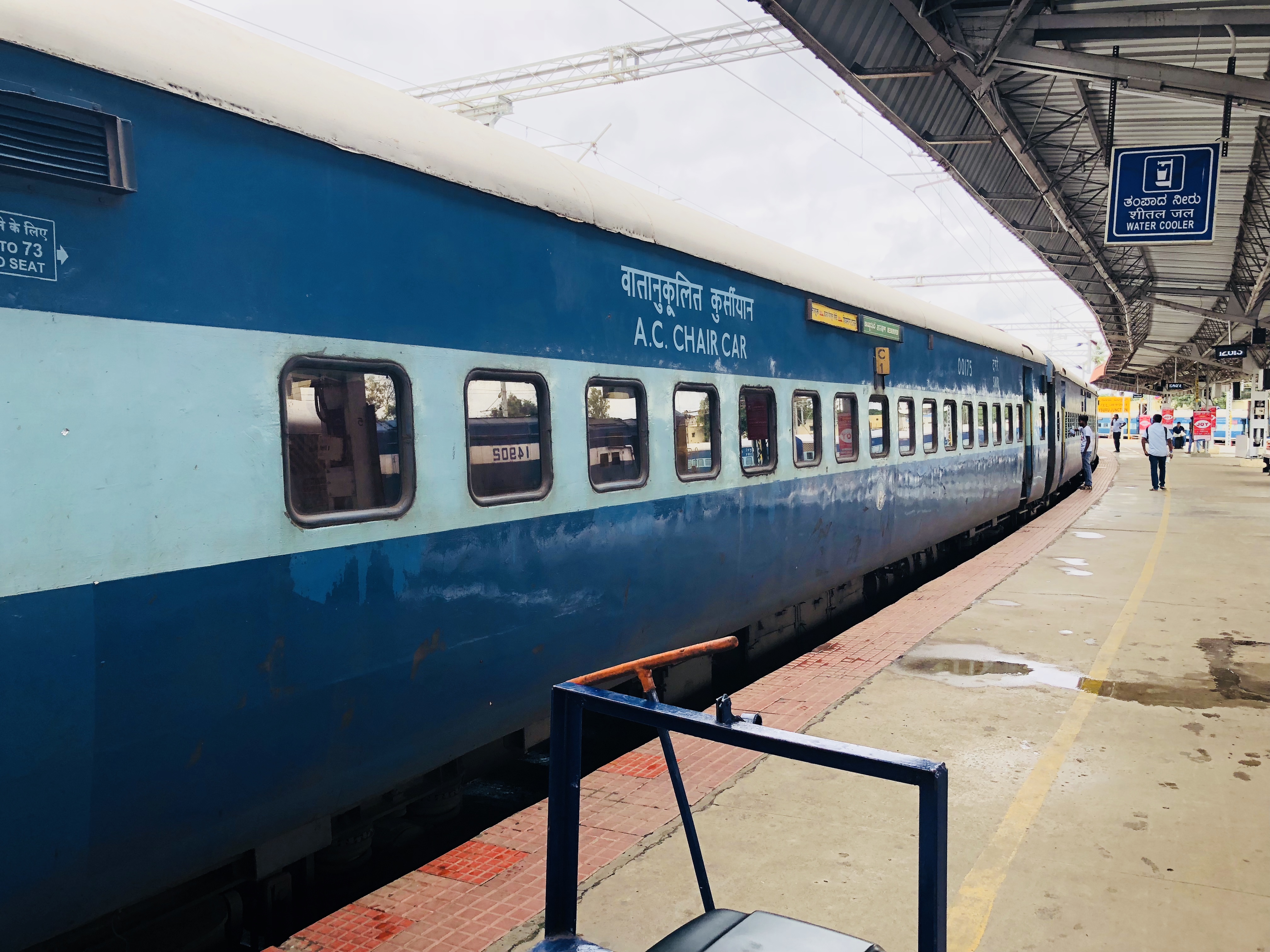 В субботу мы поехали поездом из Майсора в Бангалор. Обычно машиной эта поездка занимает около 6 часов, а скоростным поездом всего лишь 2.5 часа. Тут существуют разные градации поездов в зависимости от длительности поездки и уровня комфорта. Есть спальные вагоны, есть сидячие. Самый дорогой - первый класс. За $18 выглядит как салон самолета с встроенными ТВ перед каждым сидением и едой. Мы решили не шиковать и поехали как нормальные индусы - обычным seating car. Правда доплатили за кондиционер. Итого $5 за билет. Поезд оказался вполне приличным и чистым. Ничем особо не отличатся от русских электричек и поездов. $5 билет - дорогое удовольствие для среднего индуса, поэтому народ в нашем вагоне ехал вполне приличный. Нам разносили кофе с местными сладостями. Кофе стоит 15 центов.