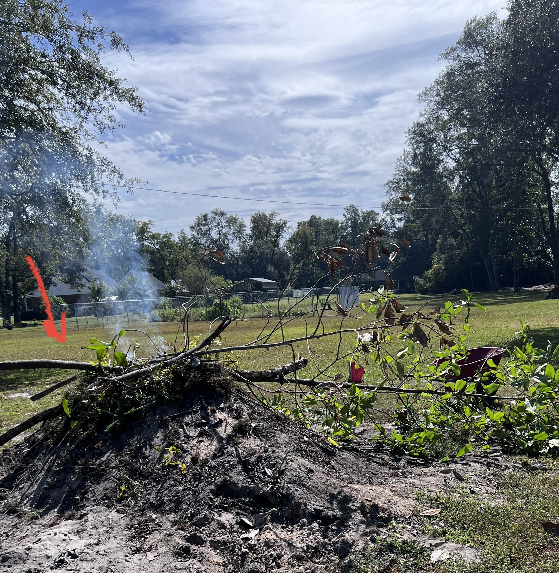 А еще работала сегодня дровосеком. Одна магнолия, довольно толстая в диаметре- но росла как бы вповалку. Решила я ее срубить. Сначала думала, что не получится, но через полчаса работы с топором, я ее сделала. Горит сейчас в костре. Высокое довольно дерево было. Вот, на снимке ствол.