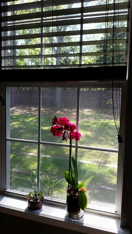 Хорошенькая. Окошко очень симпатичное.  Спасибо, друх! Вынесла орхи на порч... вроде бы в тени были.. всего лишь чуть-чуть солнца... но и этого хватило, чтобы листья кукожится начали. Занесла опять в дом