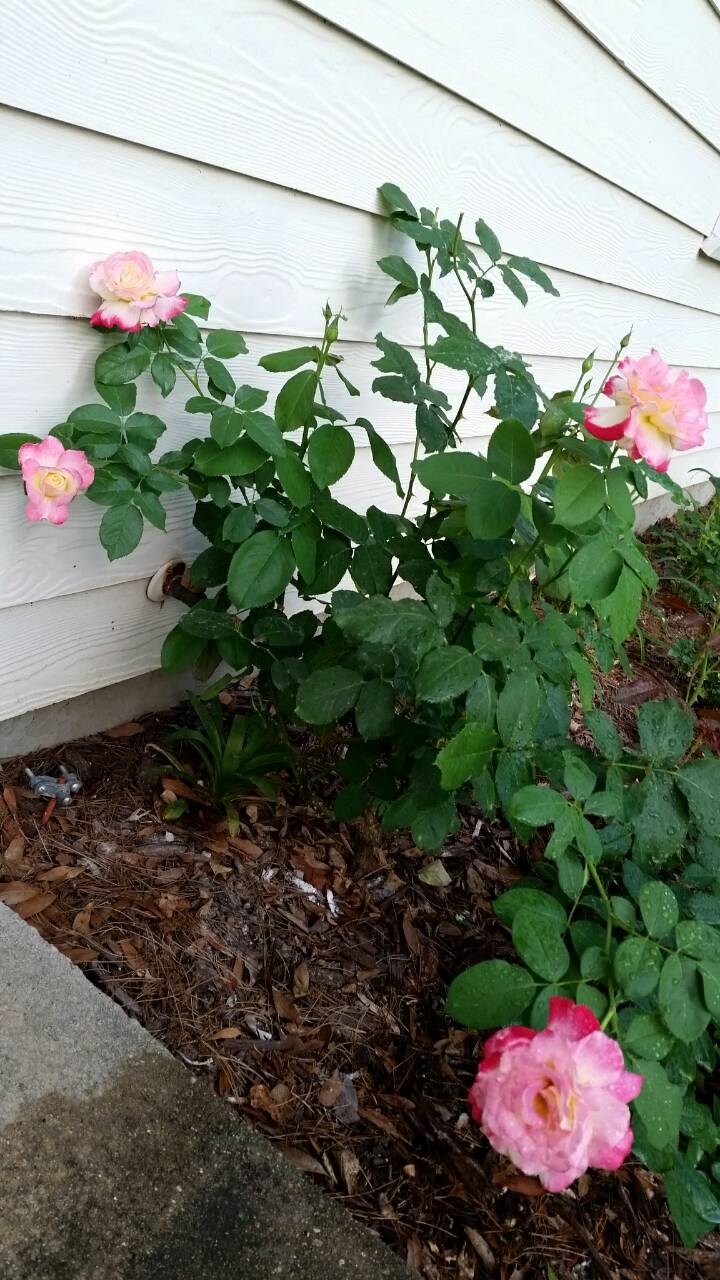 Всем дождям назло, можно полюбоваться на мою Дабл Дилайт  Одно фото на солнце, другое- вечером, после дождя. То ли она опять хочет "надуть" меня, толи содовый раствор подействовал как озверин на розы, то ли все-таки она одумалась и решила стать приличной розой... Склоняюсь ко 2ой версии, потому что соседняя с ней Синка (тоже хлебнувшая скандального растворчика) дала больше 10 бутонов (розе меньше года)... Лена, хоть ты и не любишь эту розу, я решила от бутонов не избавляться и сделать фото