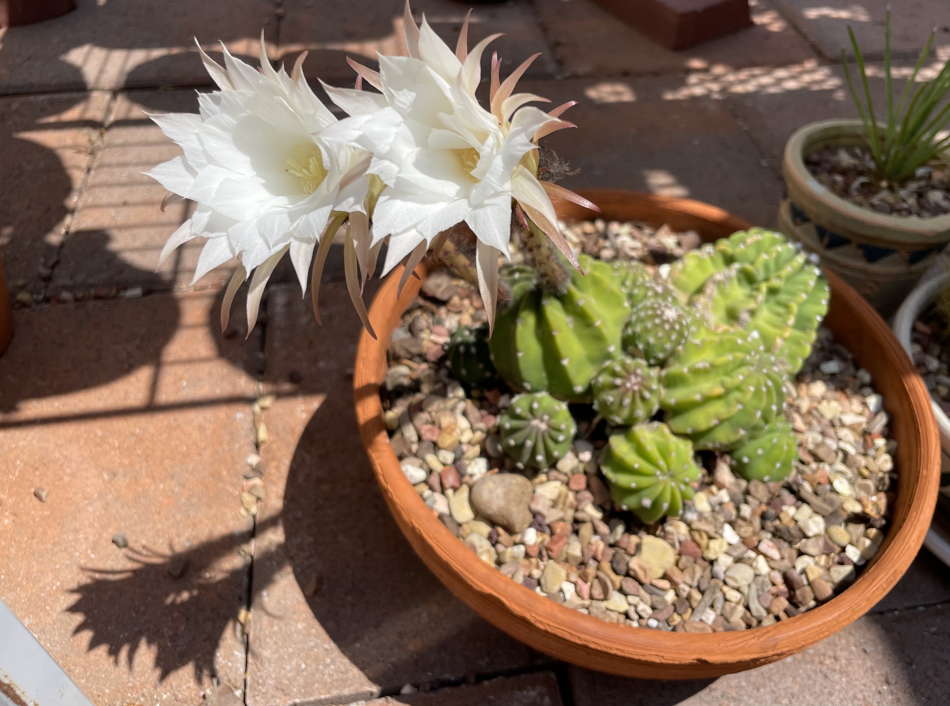 Jaxi писал(а): Т Вот нашла цветочек, . Который из Пуерто Рико привезла,проконтробандила. QUEEN OF THE NIGHT - NIGHT BLOOMING CEREUS Так ты кактус притащила или только цвИточек? Давай, вливайся в ряды суко-како-любов Сегодня в Волмарте такой отличный Эониум попался, пришлось брать. Чеснок потихоньку выкапываю. Кактусы цветут. Речь заходила про цветение Эхеверий. Цветет парочка.
