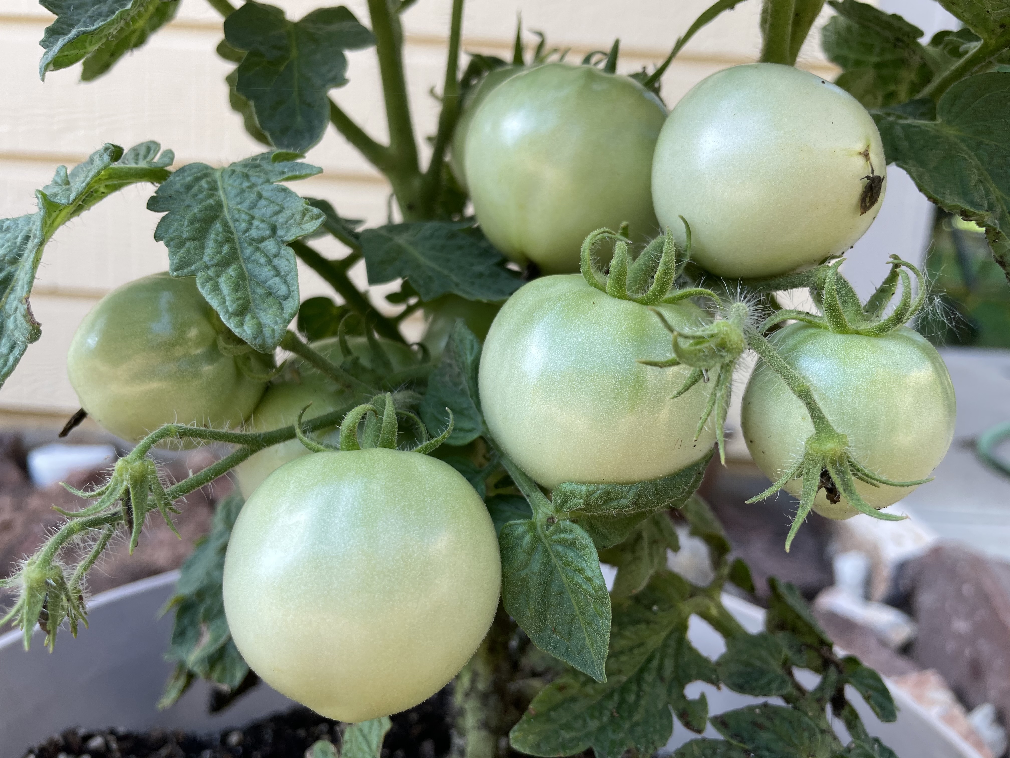 в пень ту черри для горшков и надо горшечные помидоры. Пусть сажают Patio (блин вот не помню, как оно точно называлось) - купила просто так, а кустики для такого размера прям замечательные по урожайности. и габариты - до колена не достают. Вот гроздочка, она почти во весь куст и есть. Ни подпорок, ни подвязок. Все очнеь компактно.