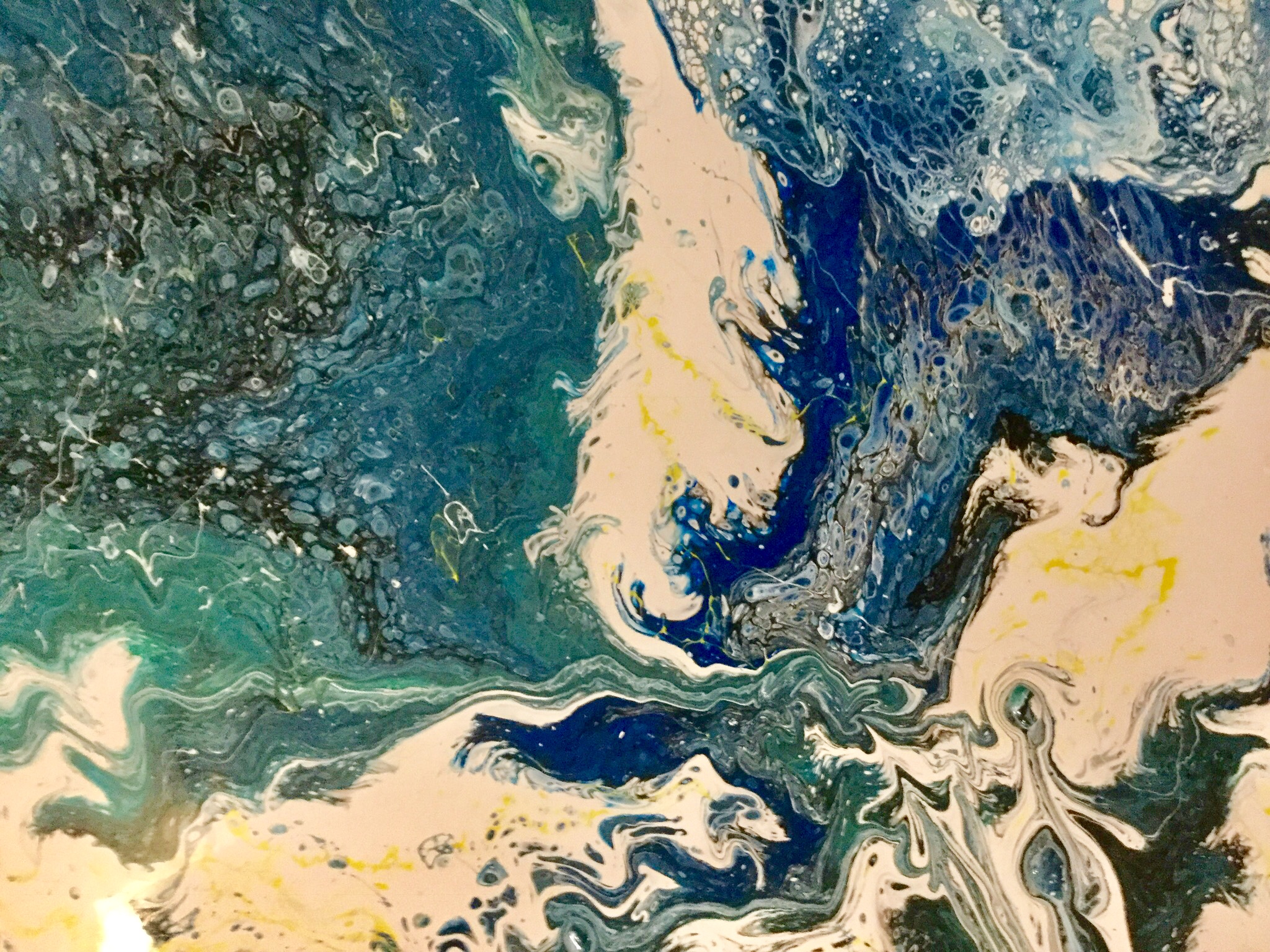 Начинаю набивать руку и оттачивать технику Поняла что нужно МНОГО БЕЛОЙ краски! На картину размером 1.5 х 1.2 метра нужно ЧЕРЫРЕ ведерка по 25 уиций! У меня столько не было в прошлый раз вот другие цвета и забили белый фон. Сегодня купила галлон белой краски и вот итог— картина в ванную комнату ; на стену возле моего Free standing bathtub Как вам такая комбинация цветов? Заметьте что цвета те же самые что и на первой картине кроме голубого; но белого в 4 раза больше и вот и результат сразу другой