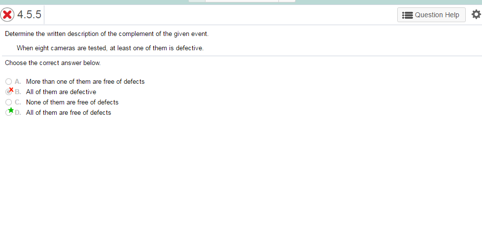 Тем не менее нельзя сказать, что все дефективные, или ни одна из камер свободна от дефектов, или больше чем одна не имеют дефектов. Хотя с точки зрения логики нужно выбирать А. Но вы же изучали статистику-там должны были объяснить почему подходить должна только формулировка Д а не другие.