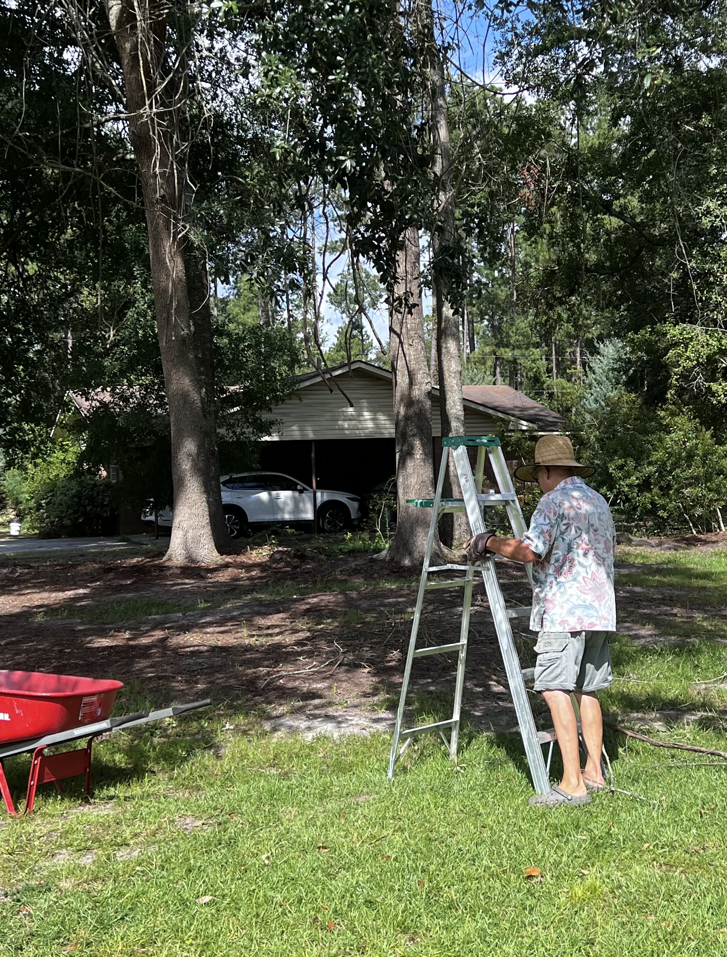 Вот мы- с утра до обеда сучья собирали в лесочке. Машина там соседская. До этого были заросли- не продраться.