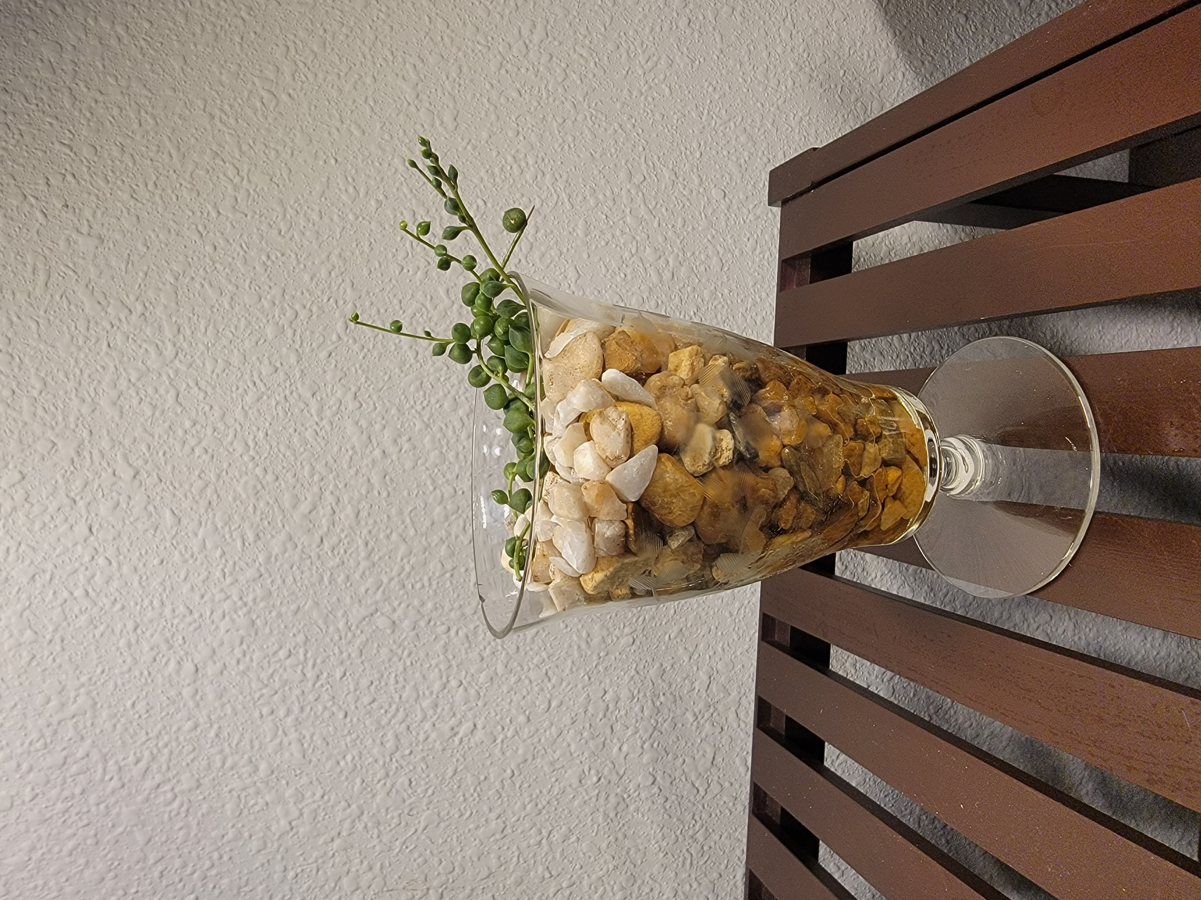 monaliza писал(а): Ну надо же! У меня наверное такой же pearl string Висит одна ниточка уже полгода, недавно trimmed, но почти нет изменений. Чем то поливаешь? Попробуй. Но ставить надо либо под лампы, либо на солнечное окно (у меня на западном). Вода с удобрением (орхидейным). Если корней нет, воды надо налить, чтоб 0,5- 1 см до основания растюхи. Если корни боль-мень нормальные, то на четверть.