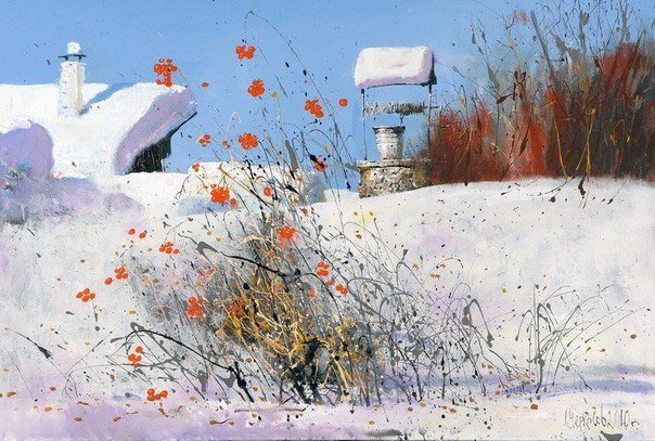 одну узнала -цветы Черкасова на снегу, они у него такие нежные , ромашки помню его и не только, была на выставке.