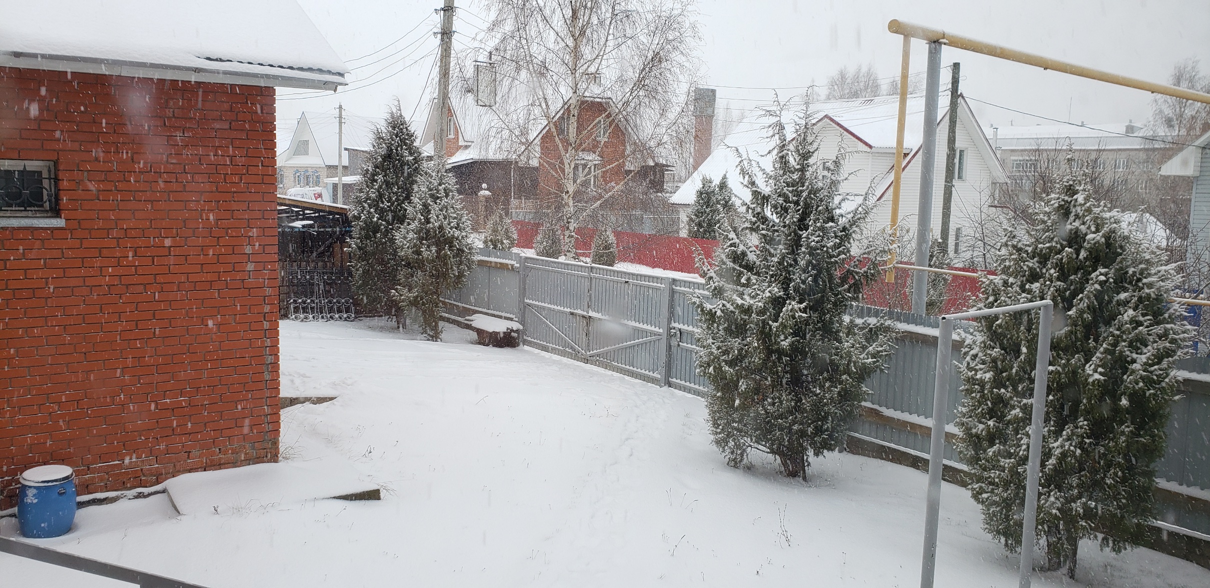 Удмуртская деревня в ноябре - снегопад- вид из родительской кухни. И ижевский аэропорт в снегу, снег расчищают. Раньше давно вроде в сильные снегопады не летали, а сейчас ничего, ничего не видно и так ладно. Как-то вроде шасси сила трения, логически, нужна для разгона и взлёта, у шасси же нет зимней резины.