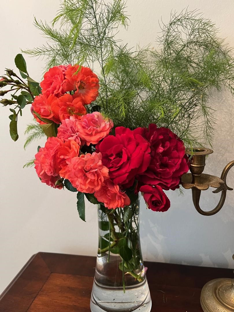 Jaxi писал(а): Понятно У меня "розовая" лихорадка уже прошла... В новом доме вообще сажать их не собиралась, уж очень много возни. Но, не удержалась... 2 сортовые у меня и 2 нокаута. И хватит! У меня тоже прошла, но снова захотелось.  Мне именно последняя у Чая понравилась и ,наверное,Lady of Shalott куплю , на этом остановлюсь. Изобилия цветов нет , но на букетики домой все равно хватает. И покупные розы меня вообще не трогают, свои-да.  Ну, мне легче... потому как местОв больше нема С благополучным возвращением! Чудесный букетик!