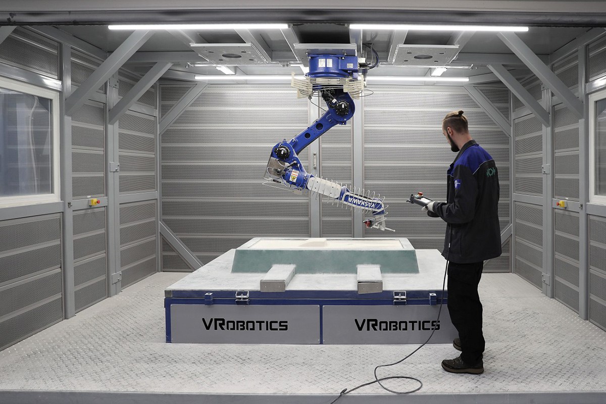В ТВЕРИ ЗАПУСТИЛИ РОБОТИЗИРОВАННЫЙ КОМПЛЕКС ОБРАБОТКИ КОМПОЗИТНЫХ ИЗДЕЛИЙ В Твери на предприятии НПО «Вояж» начали использовать роботизированный комплекс водной резки для обработки изделий из композитных материалов. Использование технологии водоструйной резки минимизирует сколы и дефекты, экономит трудозатраты на разметку и последующую ручную доработку изделия, также позволяет значительно снизить уровень вредных производственных факторов – шума и количества промышленной пыли при обработке деталей. Высокотехнологичный комплекс установлен в отдельной камере, оснащен рукой-манипулятором с режущей форсункой, насосом высокого давления, станцией водоподготовки и блоком управления. Роботизированный комплекс позволяет с высокой точностью обрабатывать струей воды давлением  Источник: ГК КСК