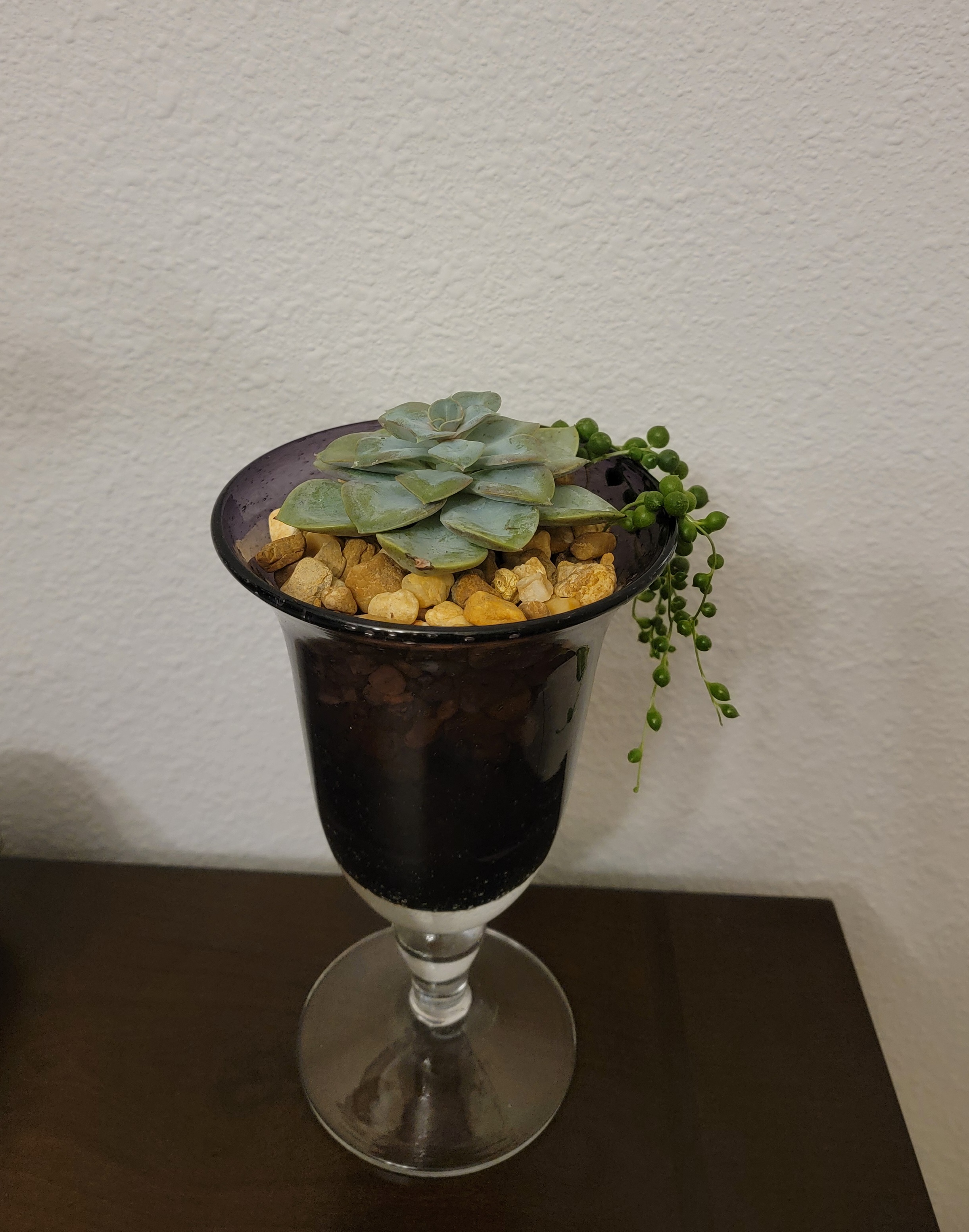 Ну, тогда поливай, как написано в инструкции. Потом название найдется Горошками- это крестовник string of pearls. Как и все крестовники растет очень быстро и без хлопот. И в камешках, и в земле. Мне попался фужер из темного стекла, вот приспособила. На треть наливаю воду (слитую из ваз с орхами) и усе. В земле растут быстрее, чем в камешках. Но мне как раз буйного роста и не надо. Размножается нитями. Если приглядеться- можно рассмотреть на нитке утолщение- это зачатки корней. Вот это самое место и должно очутиться в грунте. Собственно говоря, и все. Ничего, один не выжил- это повод, чтобы приобрести два новых!
