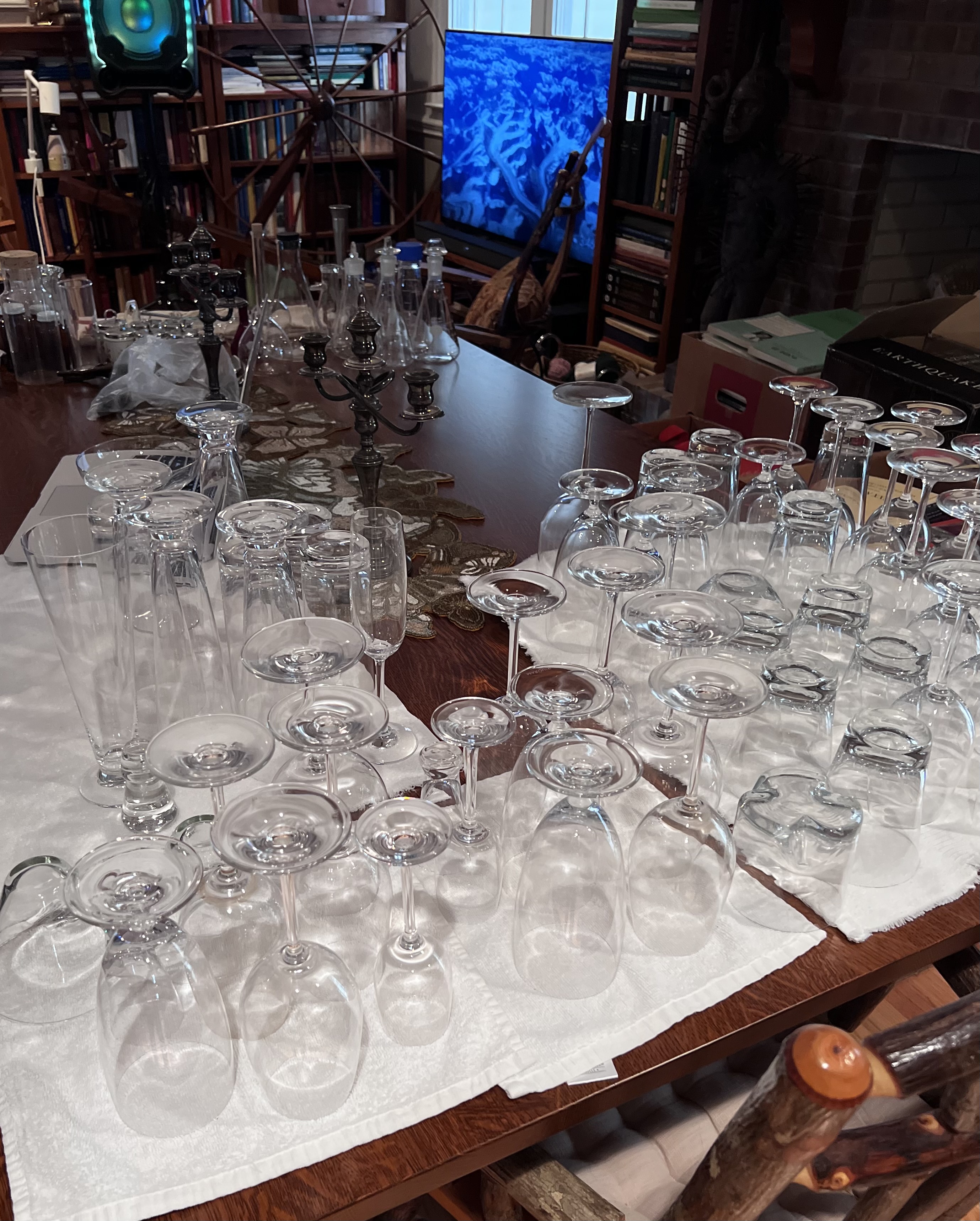 Полдня мыла бокалы и рюмки. Мой потом все вытер и расставил,
