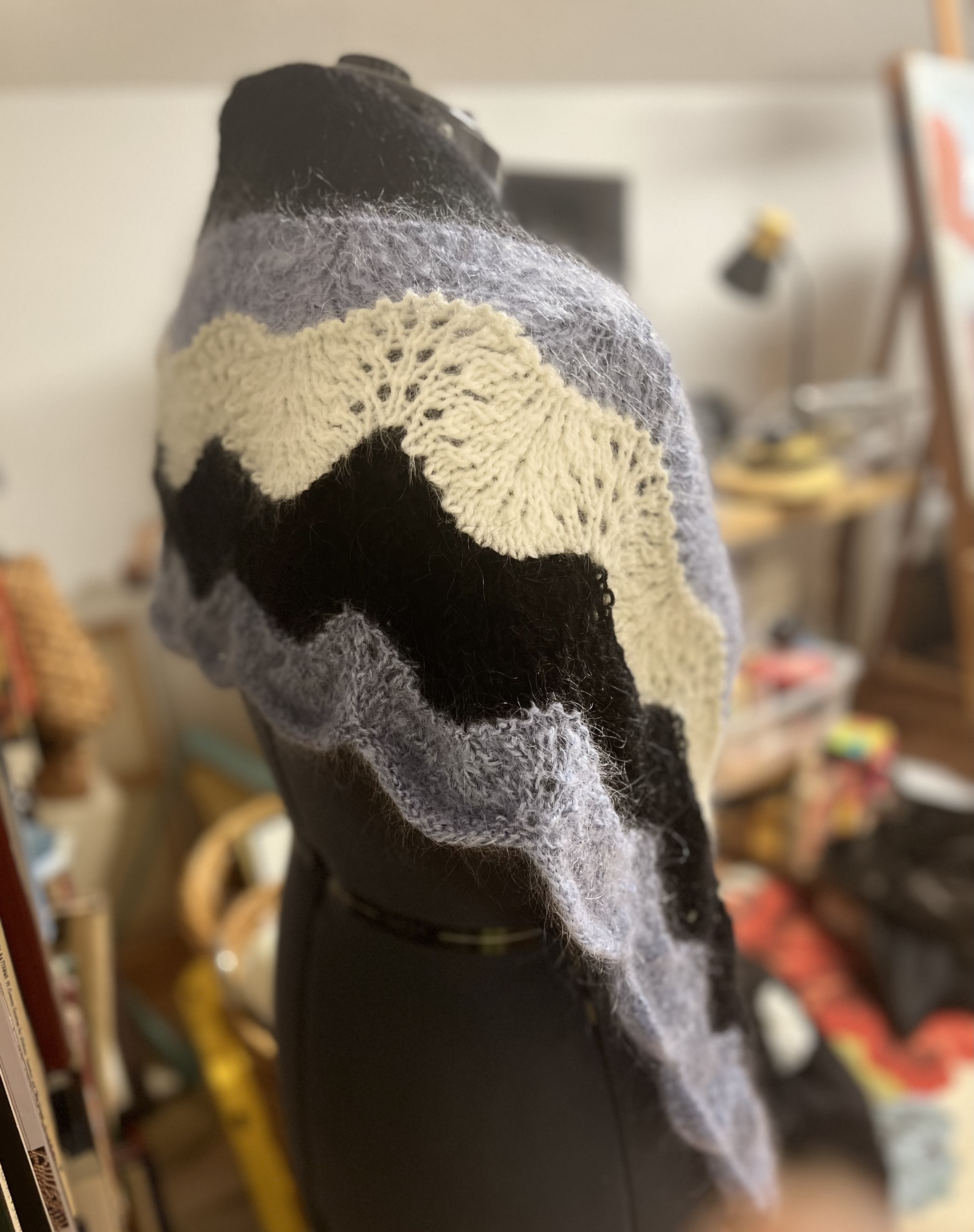 Подобрала остатки мохера и связала еще один палантин. Теплый, как шуба.