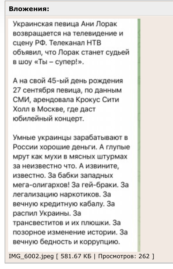 Суслик2 писал(а): :a_plain По моему Лорак никогда от Российской кормушки и не отходила. Я подписана на нее в Инстаграме, иногда просматриваю - она никогда не высказывалась против России, и не топила за Украину. Просто отмалчивалась всегда на тему политики. Продолжает зарабатывать деньги в России - по умному поступила. Вот Лабода очень агрессивно против России высказывается - я думаю что очень сильно в деньгах потеряла. Кому она нужна в Европе.