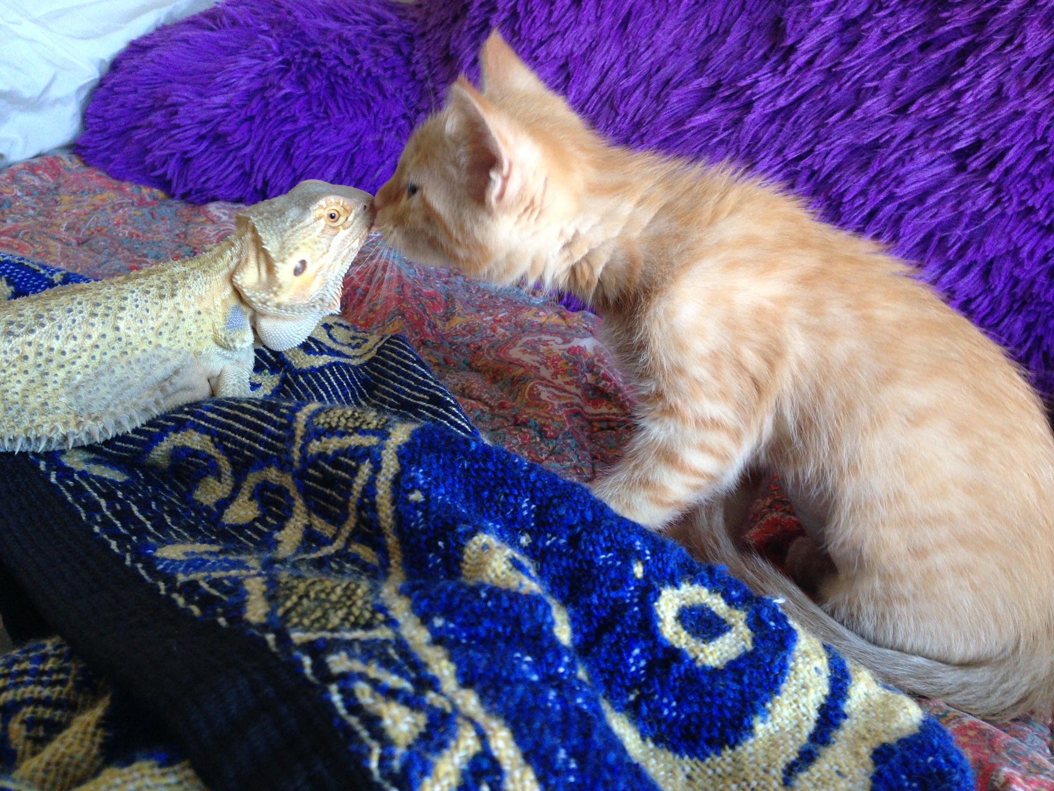 Ой, какая у вас ящерица живет классная. Она у вас по квaртире бегает? Они не будут друг друга обижать?
