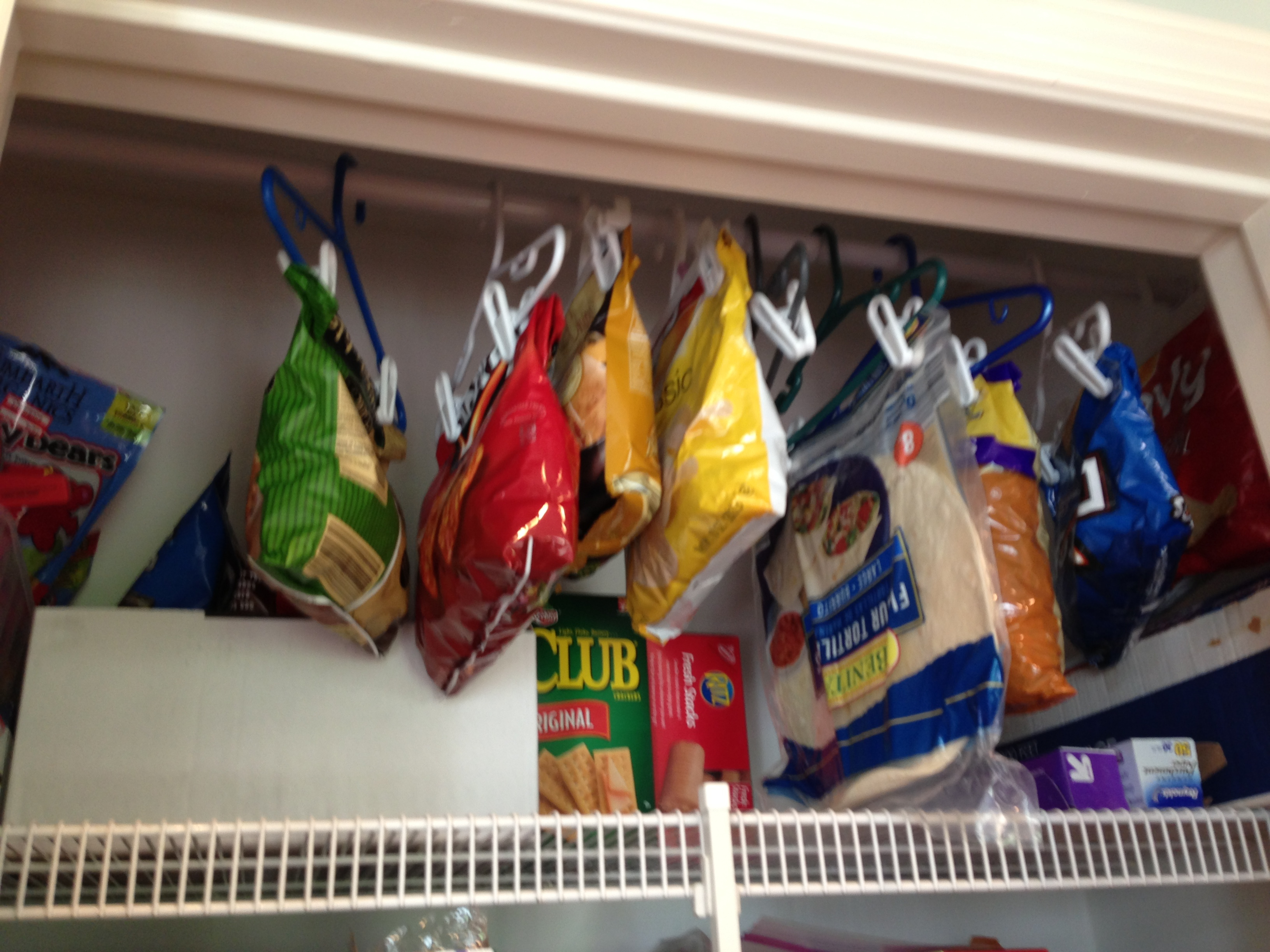 Положите их в пакет, пакет на плечики и повесить в пентри на полку. Картинку поищу сейчас. Или так