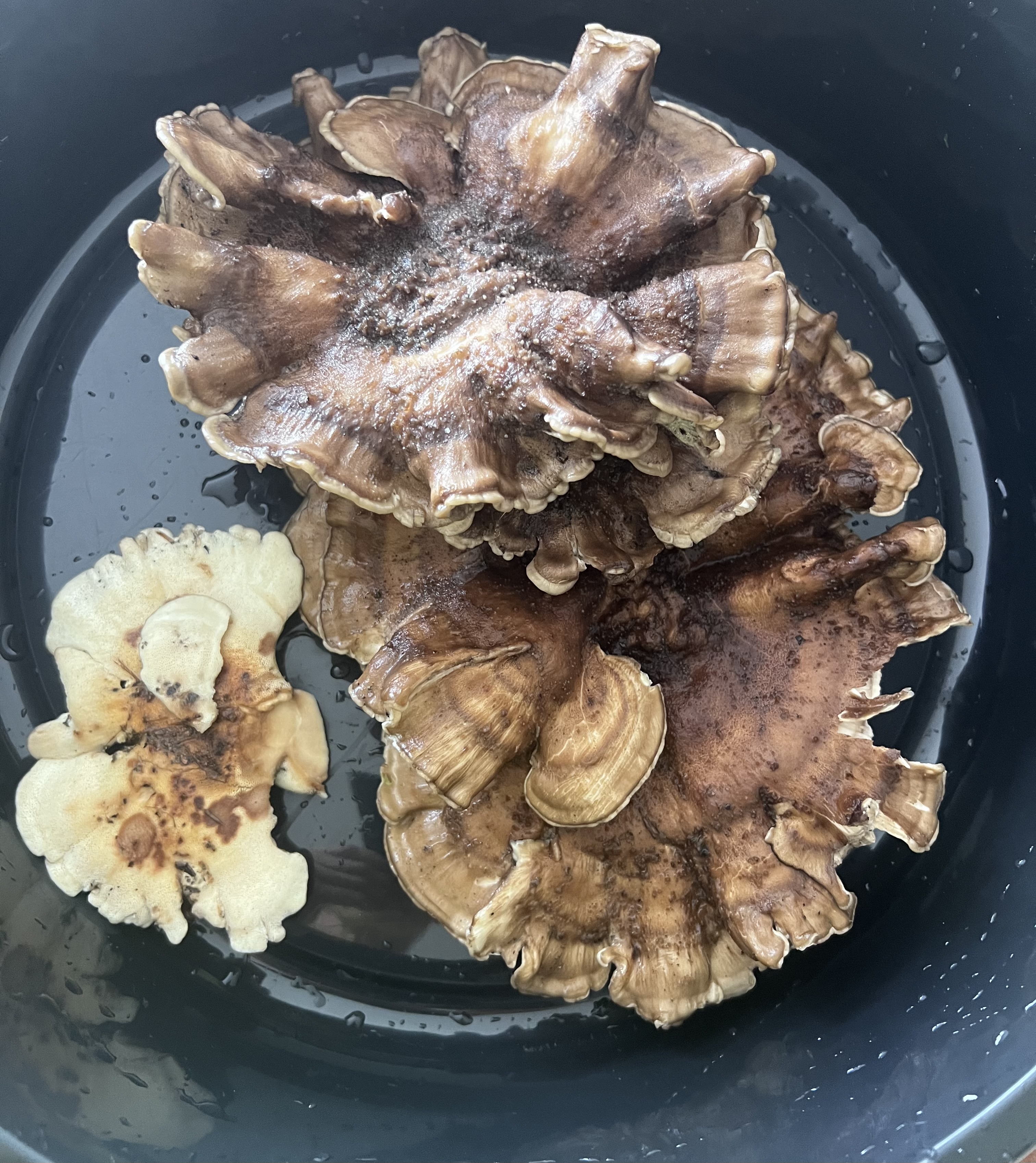 Два дня подряд дожди были, нашла два гриба около клена. Turkey tail mashrooms. Надо высушить, смолоть и добавлять в кофе!!