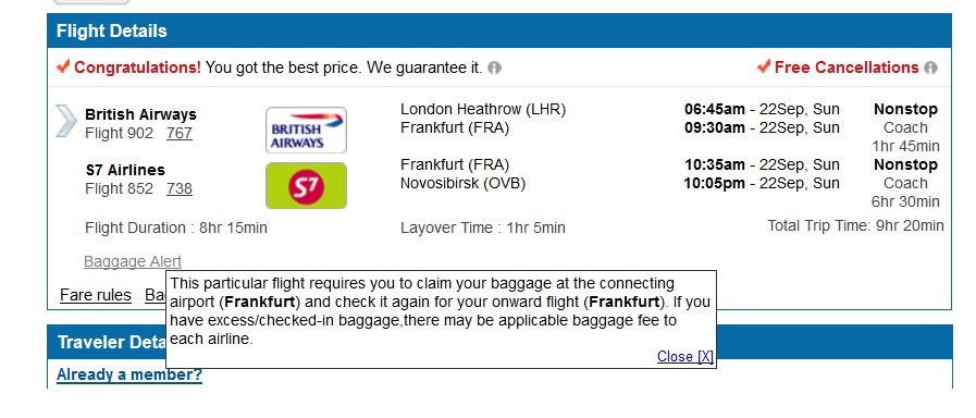rebeka16 писал(а): я не поняла тут.....если билет покупаете с одного конца и до другого,не зависимо если разные компании,багаж получать вроде не надо(во всяком случае в большинстве случаев),у меня только однажды багаж заставили всех получить,но нас предупредили еще в самолете стюардессы,за нами приехал спец автобус ну в общем все успели,но перенервничали А вот если стыковку подбираете сами,то тут уж лучше сделать интервал приличный, и даже другой вариант не рассматривать,багаж сам точно никуда не полетит Да, елки, написано там, что по S7 - Baggage Alert: