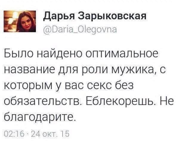 Myself1967 писал(а): Так замужние и озлобленные вход закрыт Гудля , Нравиться мне как ты за кадров раска зываешь , продолжай .... Я тут с одним стрелку забивала , а он мне ты это ко мне приезжай 1,5 часа в пути , я ему еще раз повторяю , я не ездию на смотрины сама , приезжай сам ко мне . Он как начал меня обзывать , голдигерша , рашен бичь , так я его забанила , думаю господи вот нарвалась на мудилу . Говнюк , хорошо что не стала с ним встречаться . Да уж пронесло  Хотя мне кажется у таких на морде должно быть написанно байополар