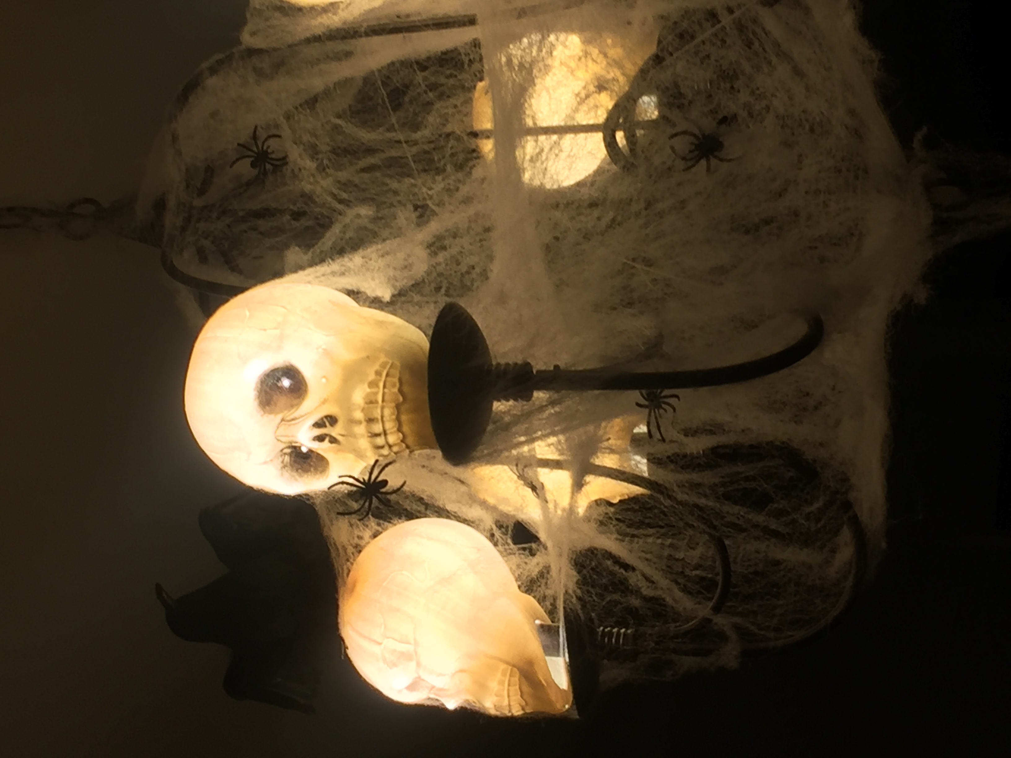Ну и так как в доме маленький ребёнок, то украшаю только там, куда дочь не может дотянуться. Правильно, люстру и пенданты. Она была со мной в магазине, помогала складывать черепа в тележку. Так смешно было.