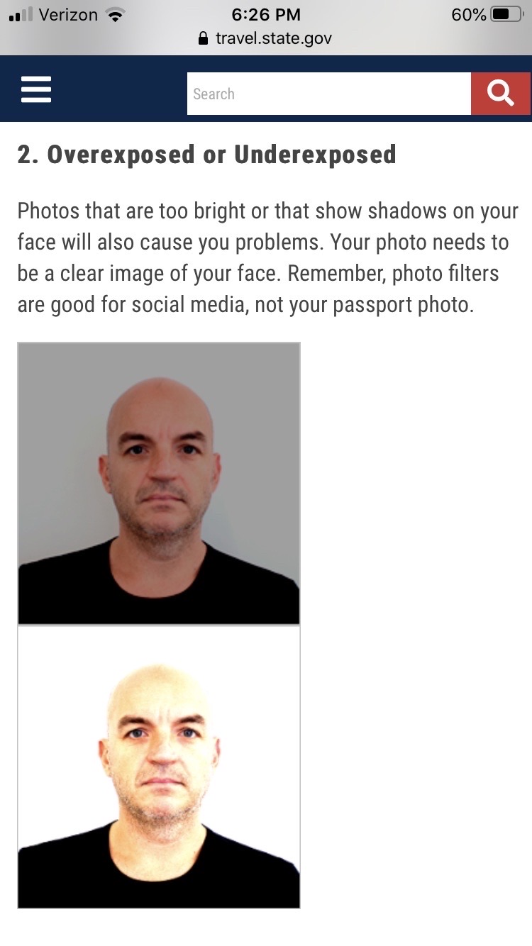 Случайно заметила,что срок действия амер.паспорта истекает. Срочно поехала на почту там сделала фото,заполнила бумаги,заплатила и отправила. Уф,успела! Сегодня получаю паспорт. Открыла и ..... Фото на паспорте overexposed. . Очень светлая и тени на лице. Я -блондинка. Честь (верх головы) сливается с белым фоном.... я вообще удивляюсь как приняли такую фотографию,т.к. открыла их официальный сайт где пишут о требованиях к фотографии на паспорт:" Photos that are too bright or that show shadows on your face will also cause you problems. Your photo needs to be a clear image of your face..." Я вообще очень удивлена,что приняли такую фотографию. Они должны были запросить другое фото! Конечно,я тоже виновата,что доверилась тетке на почте. Я даже не посмотрела как получилась,потому что была уверенна,что она то знает как правильно делать фото! Теперь вопрос. Что я могу сделать в этой ситуации?Я переживаю,что где-то ,в какой-нибудь стране,очень не вовремя,в аэропорту остановят меня и доказывай,что я-это я. Паспорт делала в travel.state.gov