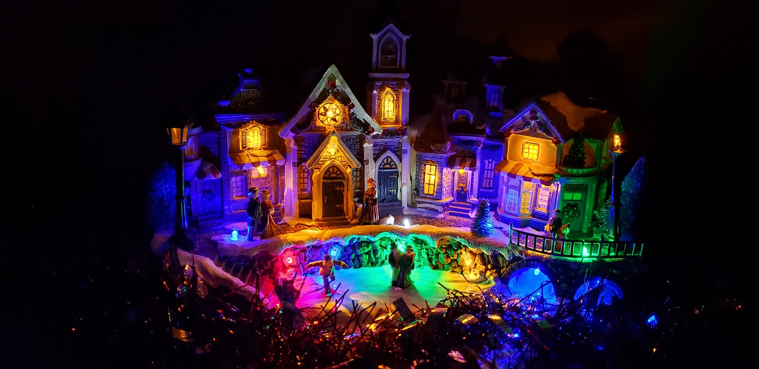 Christmas village with lights and music. Один из фигуристов вот только с годами куда-то укатился.