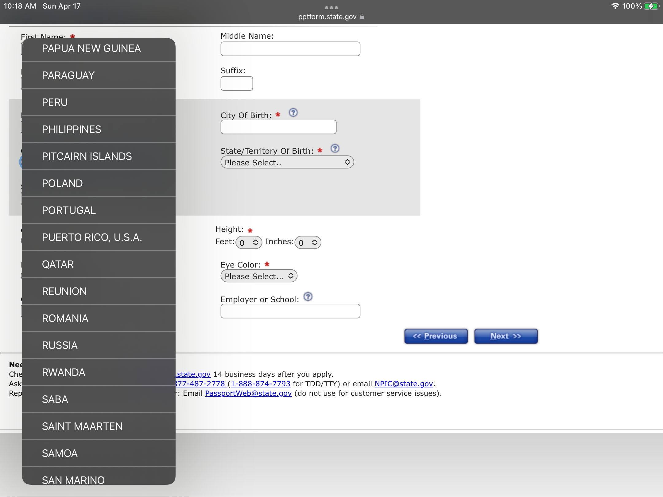 Lost my renewed passport last summer. i was trying to report it on- line but my place of birth was not in their drop down.... (Only Am states in option). What should I do? thanks