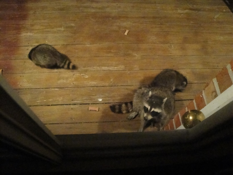 Долл, ладно, уговорила, продолжаем фотки, мы на природе вечно сталкиваемся с животными и с их проблемами, приходиться помогать и решать, то заблудшую или подброшенную кошку приютили, то оппосум у нас в гараже жил, зиму зимовал))) А прошлым летом повадилась к нам енотиха беременная ходить и попрошайничать , ну мы ее подкармливали, я перед отъездом из дома всегда ей оставляла воду и смесь молока с кошачьим сухим кормом , это было ее любимое лакомство, потом она стала прямо из рук наших брать собачьи палочки и хрумкала так аппетитно всегда  Еще очень любила белый хлеб с молоком, вот она раскрасавица)
