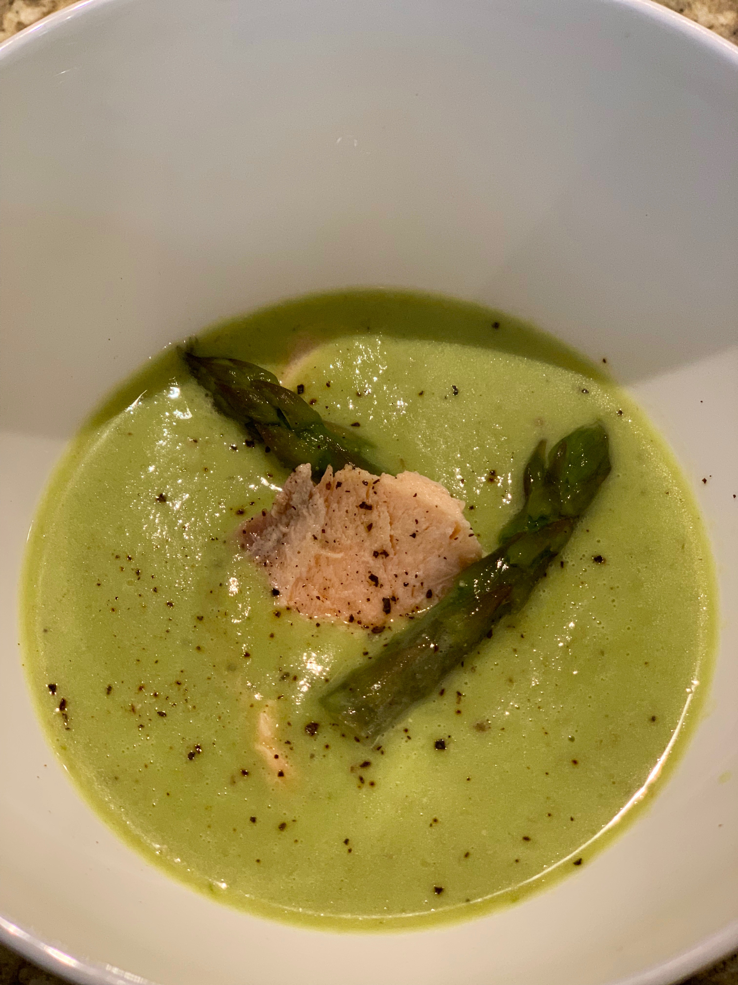 Супчик cream of asparagus soup with hot smoked salmon