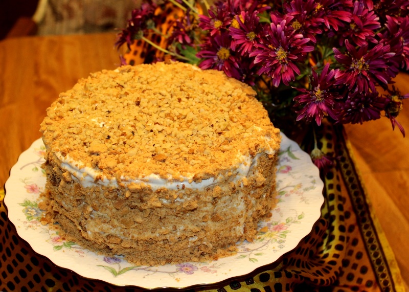 Этому торту больше подойдет название Крем Брюле. Вкусный. Не хрустящий, потому что я клала раза в четыре меньше масла в крем и от этого он быльнемного жидковат. а если бы с маслом поболее, то думаю хрустел бы ( к евский торт хрустит и крем в нем масляный).Может еще когда нибудь испеку, но буду класть меньше сахара... А може я просто уже настолько фул, что не могу оценить качества торта. Все утро готовили, турка получилась очень сочная и мягкая. этоьмоя первая турка. только куда ее столько??? все было вкусно  убирать не охота, пойду посплю. Щас лопну.