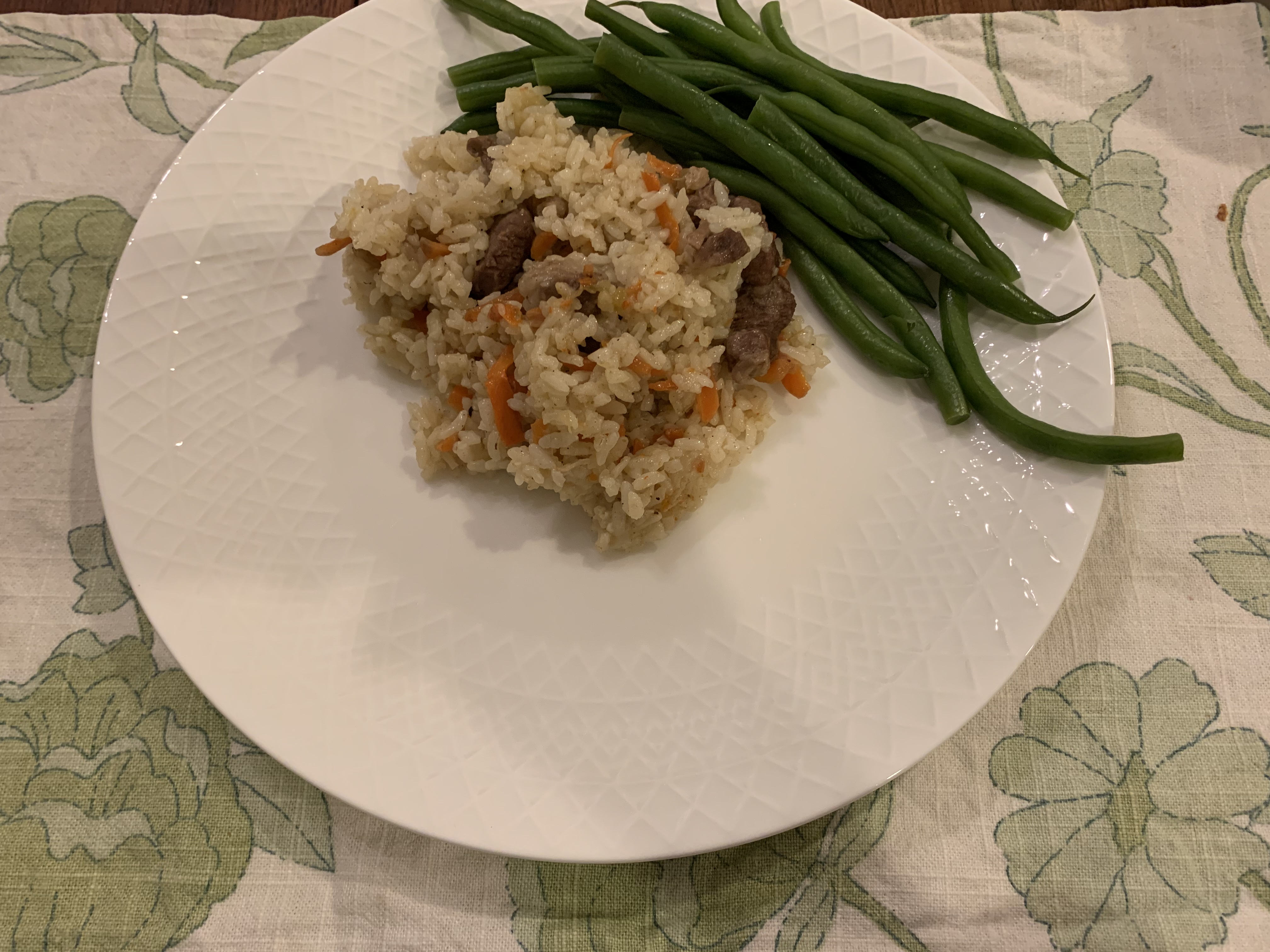 Плов у меня из риса неферганской долины, и даже не гималайский жасмин. использовала какие были остатки мяса в холодильнике плюс баранины добавила. получилось на удивление вкусно. пока готовила думала фигня получится.