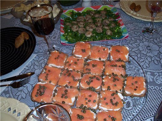 У меня толпа будет родственников по идее, за стол мы не садимся, не помещаемся  , я делаю шведсткий стол, ставлю все в огромных тарелках Вот еще идея такая, в Костко продаются масслс сетками, сетка где-то 14 баксов, там их много, вот такое хочу приготовить http://fishcooking.about.com/od/musselr ... ussels.htm