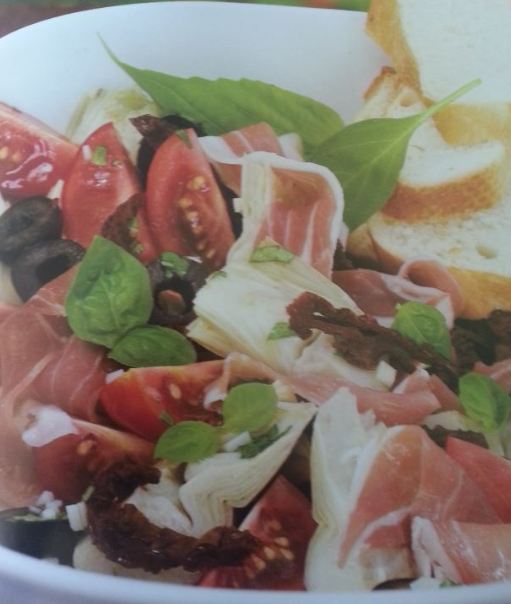 Вот еще из выпендриваний  , у меня почти все американцы будут, так бы я шубу сделала с оливье, дык не едятЬ Вот такой артишок и просчутто салад - банка артишок хартс - 4-6 черри томатов - чуть сан драед томатов - просчутто - оливки - базилик - хлеб (просто рядом с блюдом) Дрессинг - 3 ложки ст оливкового масла - 1 ложка ст белого уксуса - чеснок мелконарезанны - 1/2 горчицы - 1 ложка меда - соль, перец по вкусу все смешать Разложить все ингридиенты на тарелку и полить дрессингом, но только за пару минут до еды, очень вкусно пысы напишу попозже тюну салад, тоже вкусно получается и главное всем нра и русским и ам