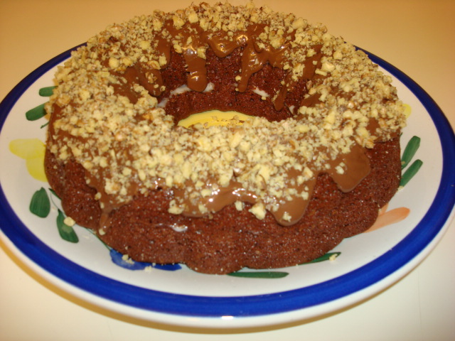 Есть только такая фотка этого тортика, как то пекла его в таком виде. Но плоский вкуснее получается. Здесь я просто топила шошолад, немножко был суховат.