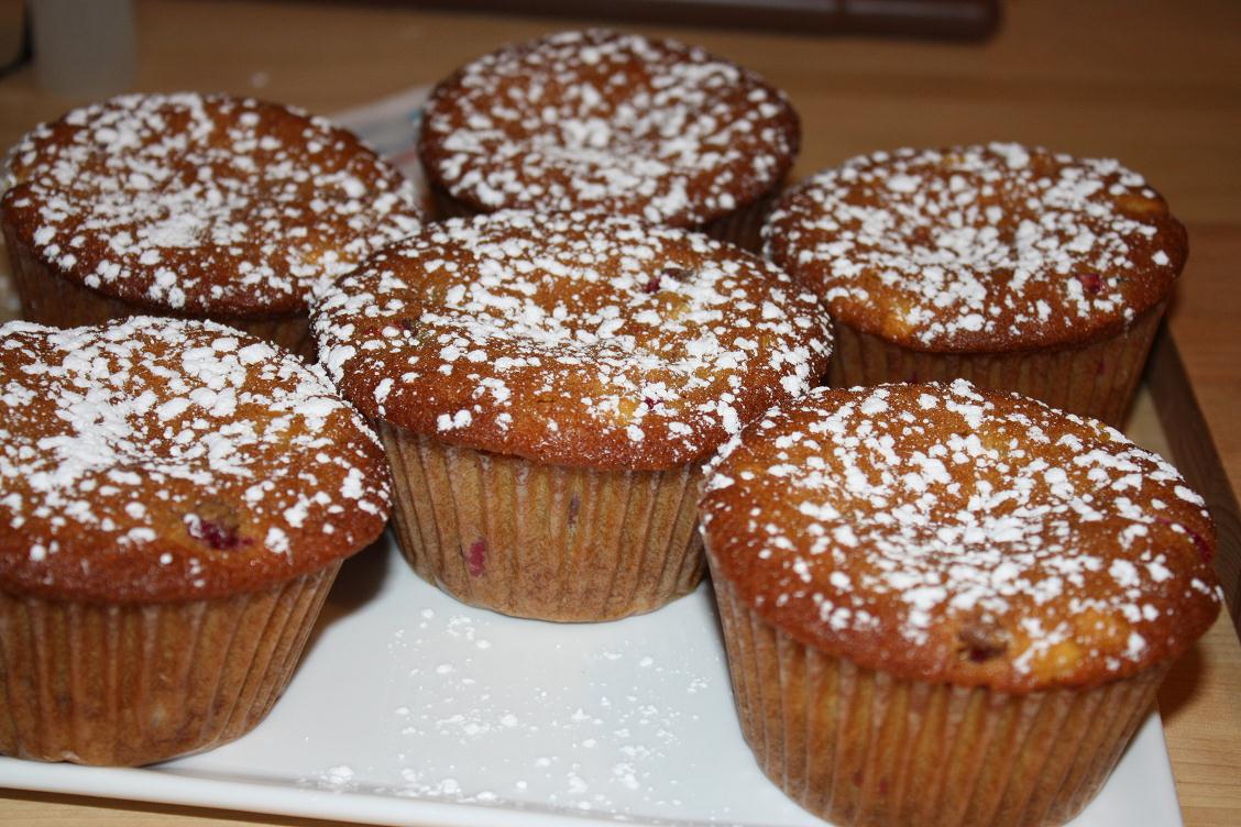 Вкусненькие маффины и очень просто готовить, сейчас как раз сезон клюквы Яблочно-Клюквенные Маффины (Apple Cranberry Muffins) Ingredients: 1 ст. апельсинового сока 100 г растопленного сл. масла или маргарина цедра 1 апельсина 2 яйца 2 ст. муки 1 ст. сахара 1 ч.л. соли 2 ч.л. разрыхлителя 1 ч.л. соды 2 ч.л. корицы 1/4 ч.л. мускатного ореха 1 яблоко 1 1/2 ст. свежей (или замороженной) клюквы сахарная пудра (один раз с корицей делала, только щепотку, второй без специй делала- и так и так вкусно) Preparation: Разогреть духовку до 170С. Яйца с сахаром взбить слегка венчиком, добавить масло, цедру и апельсиновый сок. Отдельно просеять муку, соль, корицу, мускатный орех,соду и разрыхлитель. Сделать в мучной смеси углубление и влить туда жидкие ингредиенты. Аккуратно перемешать. Яблоки очистить и нарезать на маленькие кубики. Крупную клюкву разрезать пополам. Добавить в тесто, и слегка перемешать. Выложить в промасленную форму для маффинов (в зависимости от размеров формы, получается 12 средних маффинов), и выпекать примерно 20-25 мин, проверяя на готовность спичкой. Немного остудить и присыпать сахарной пудрой.