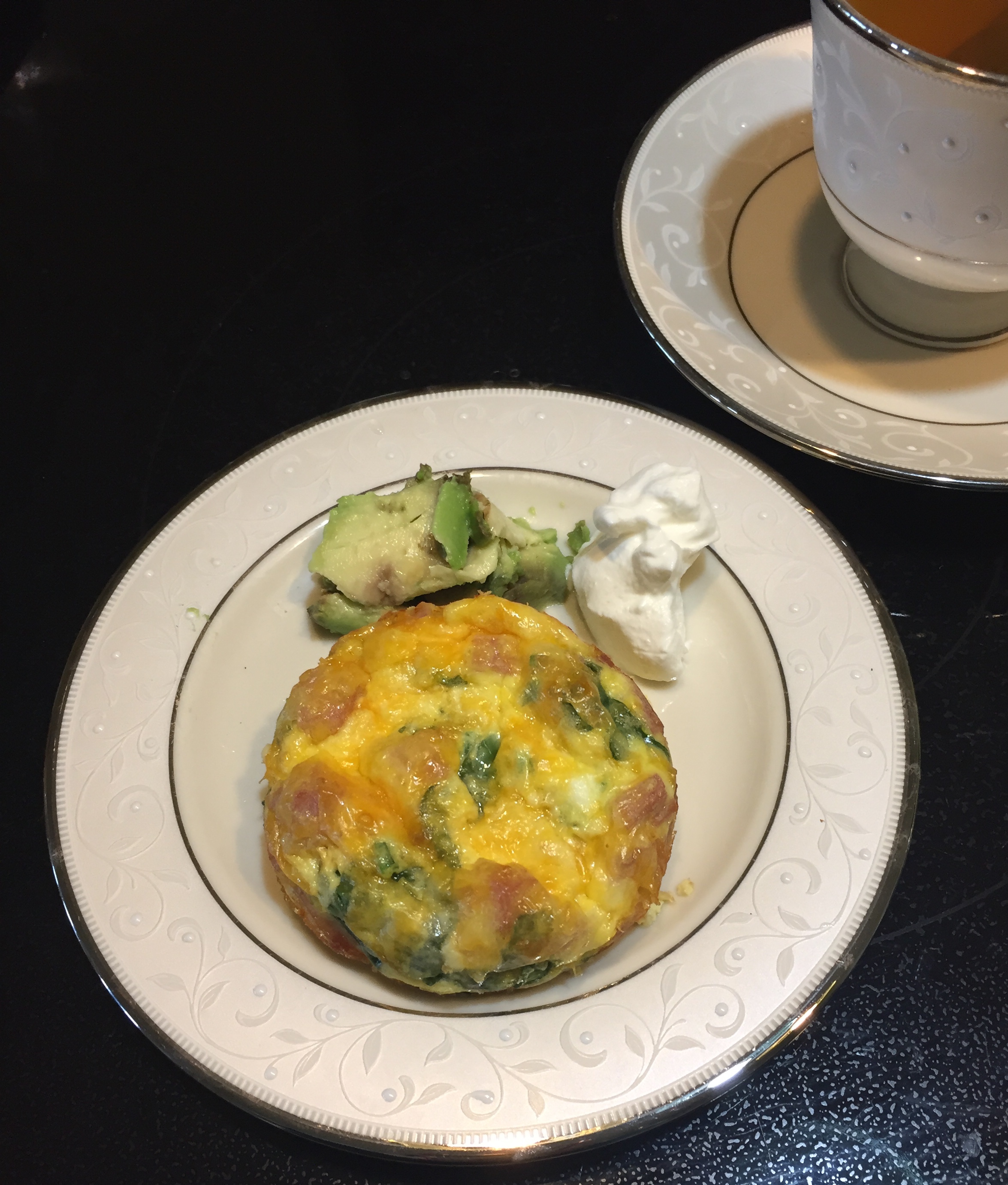 Идея для завтрака, сегодня готовила маффинс с яйцом (+соевое плейн молоко), ветчиной, сыром, и шпинатом. 350Ф, 20 минут. Себе добавила авокадо и чл сметану, чтоб пожирнее было, плюс 1 маффином наелась из-за этого.