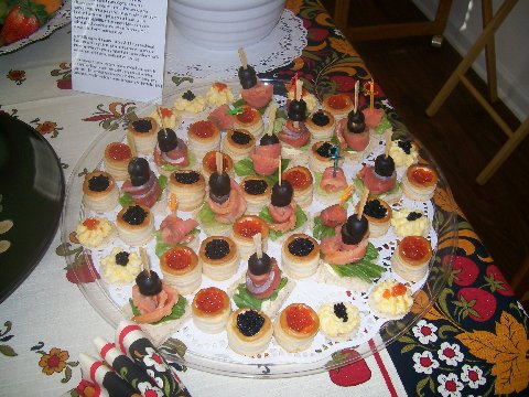 На поднос с холодными закусками: