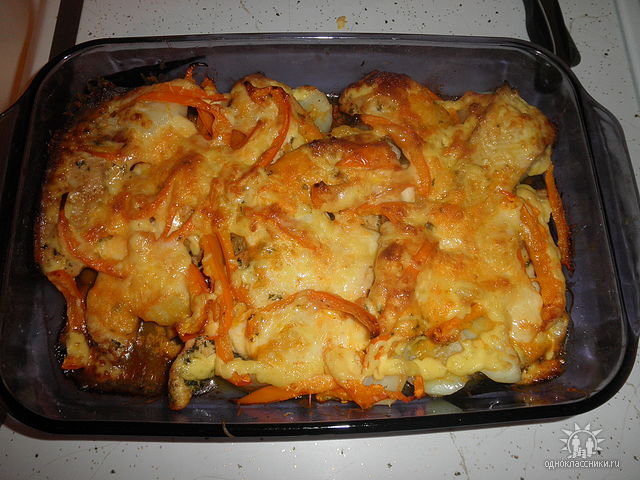 fatcat писал(а): Цитата: мясо по-капитански - это типа запеканки.. лук кружочками, свинина (шея) или кура (бедрышки или ножки), сверху картошка пластинками нарезана (ну как на чипсы только толще), сыр, майонез. я дома раньше плавленные сырки терла вместо сыра - разница с сыром огромная, сырки осаются тягучими и очень очень!!! нежными, а сыр коркой зажаривается. не знаю где тут и сырки можно купить... Дык это обычно называется "мясо по-французски" http://www.good-cook.ru/vtoroe/vtoroe_048.shtml я мясо по-капитански всегда так делала: на кусок отбитой свинины (соленой-перченной) - несколько колечек лука, майонез, кружочек свежей помидорки, кружочек соленого огурчика, сверху тертый сыр. А мясо по-французски действительно как описали выше - как запеканка, то есть мясо запекается не одним большим куском а режется на кусочки поменьше и укладывается слоями с луком и картошкой