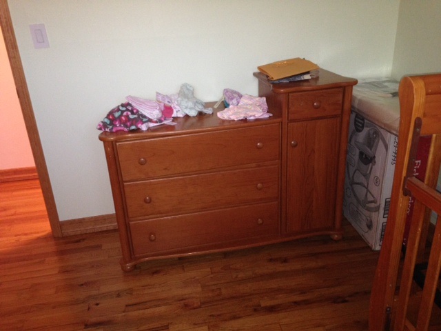 Нам ещё отдали кроватку и комодик, так что мы решили новое не покупать, с кроваткой отдали матрас, сказали хотите оставьте, хотите выбросьте. Так что у меня теперь делема оставить или всё же новый купить? Кроватку и комод протёрла дезинфицирующими салфетками, а сверху ещё и наполировала средством для дерева