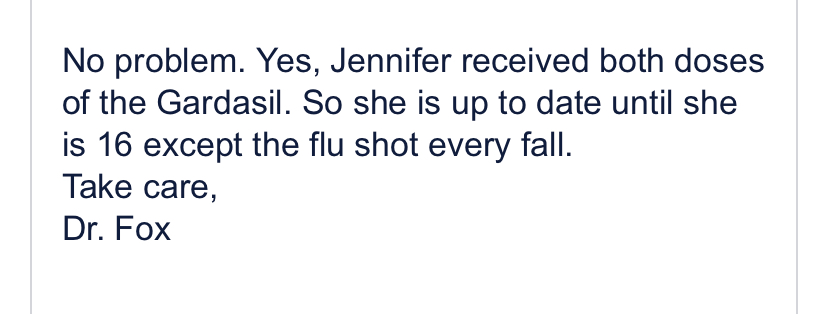Гардасил уже сделали первый шот, пойдем скоро делат второй