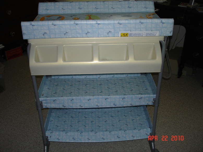 Тоже решила похвастаться своим пеленальным столиком. Он очень лёгкий и на колёсах. А знаете почему? Потому что у него снимается верх, а под ним ванночка! И не надо в три погибели склоняться! Те девочки, у которых проблемы со спиной, меня поймут. Кроме того он очень легко моется- у него клеёнчатый верх. И цена была шикарная-45 баксов...Но это 7 лет назад.