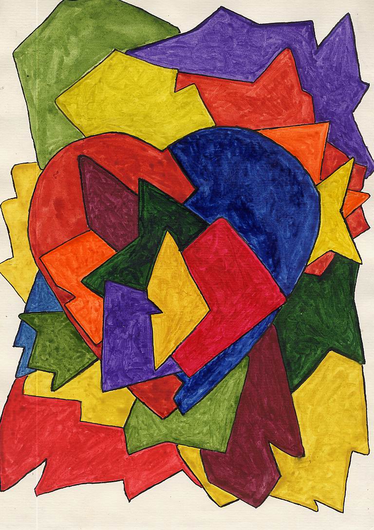 Видимо, никому не нравится художник, который рисует мелками! Мне интересно, вы помните, как вы начинали рисовать? Первые сознательные рисунки? Я рисовала на подоконнике своего окна в комнате в подростковом возрасте!! Рисовала лысых девушек без рук и нок с редким проявлением черт лица! А потом у меня был период, когда я начала рисовать что-то абстрактное, мне тогда это очень нравилось! Вот типа этого: