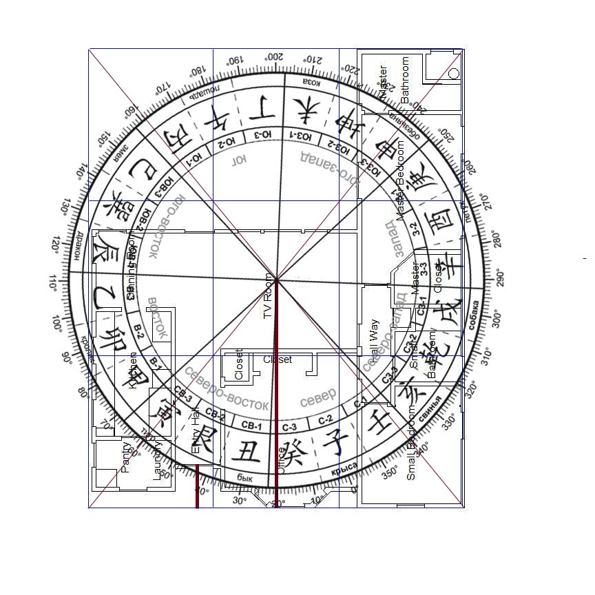 Дамы, помогите, пожалуйста: Наложила шаблон 24 гор на план дома. Вижу, что 1. Персик на окне кухни 2. Юга в доме нет 3. Юго-Восток очень-очень маленький 4. Юго-Запад тоже очень маленький